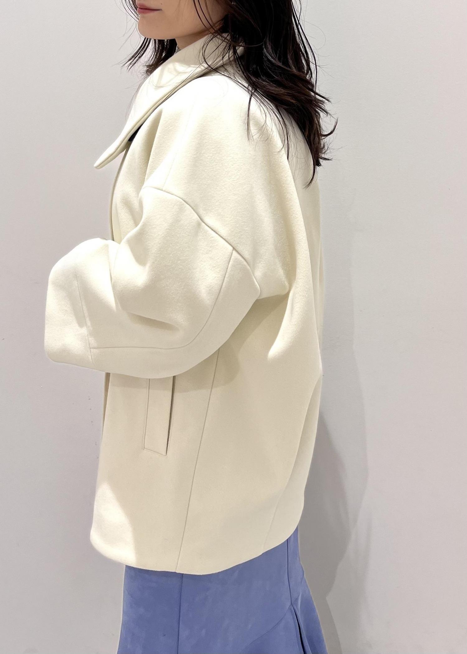 アウトレットVIS【静電気防止】ステン&スタンドカラージャージメルトンミドル丈コートオフホワイト / M¥6,593レビュー身長158㎝、Mサイズ着用。