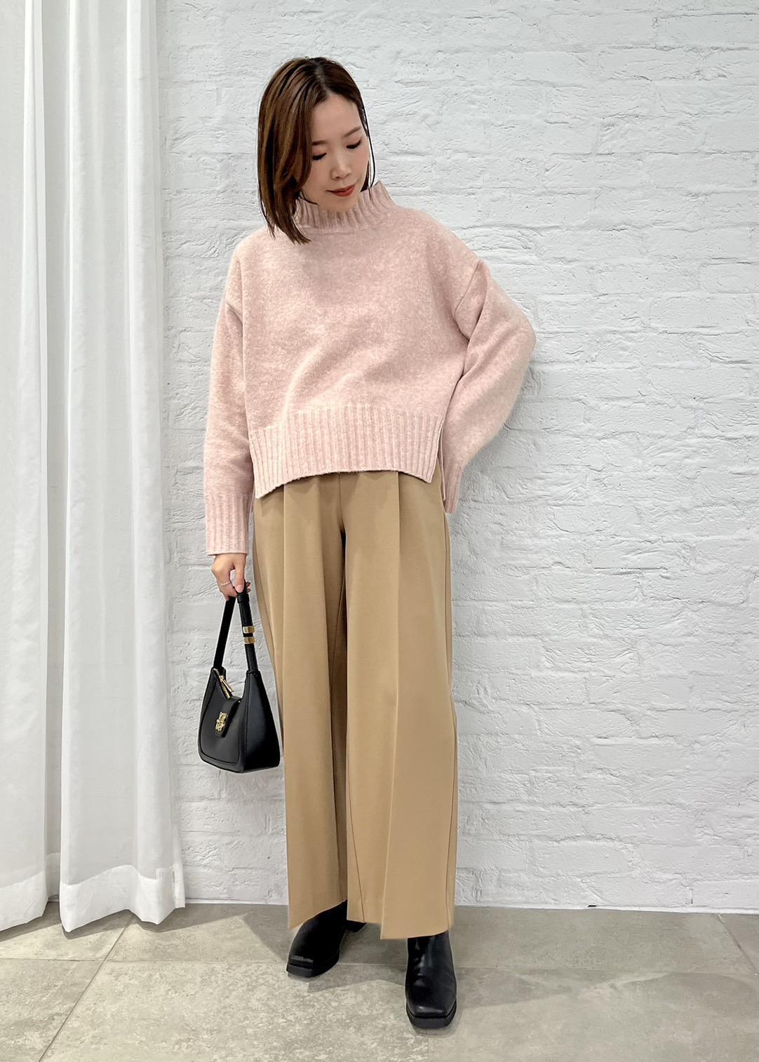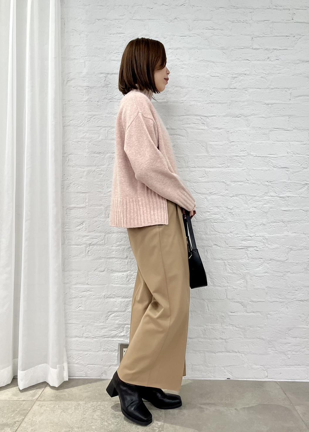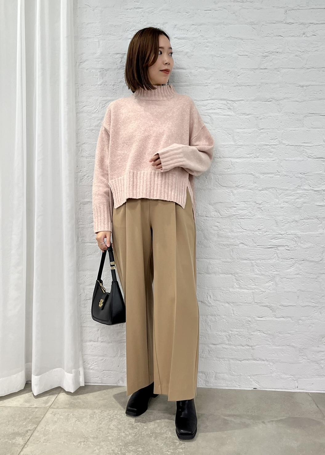 淡いピンクカラーが大人カジュアルなスタイリングにぴったりです!