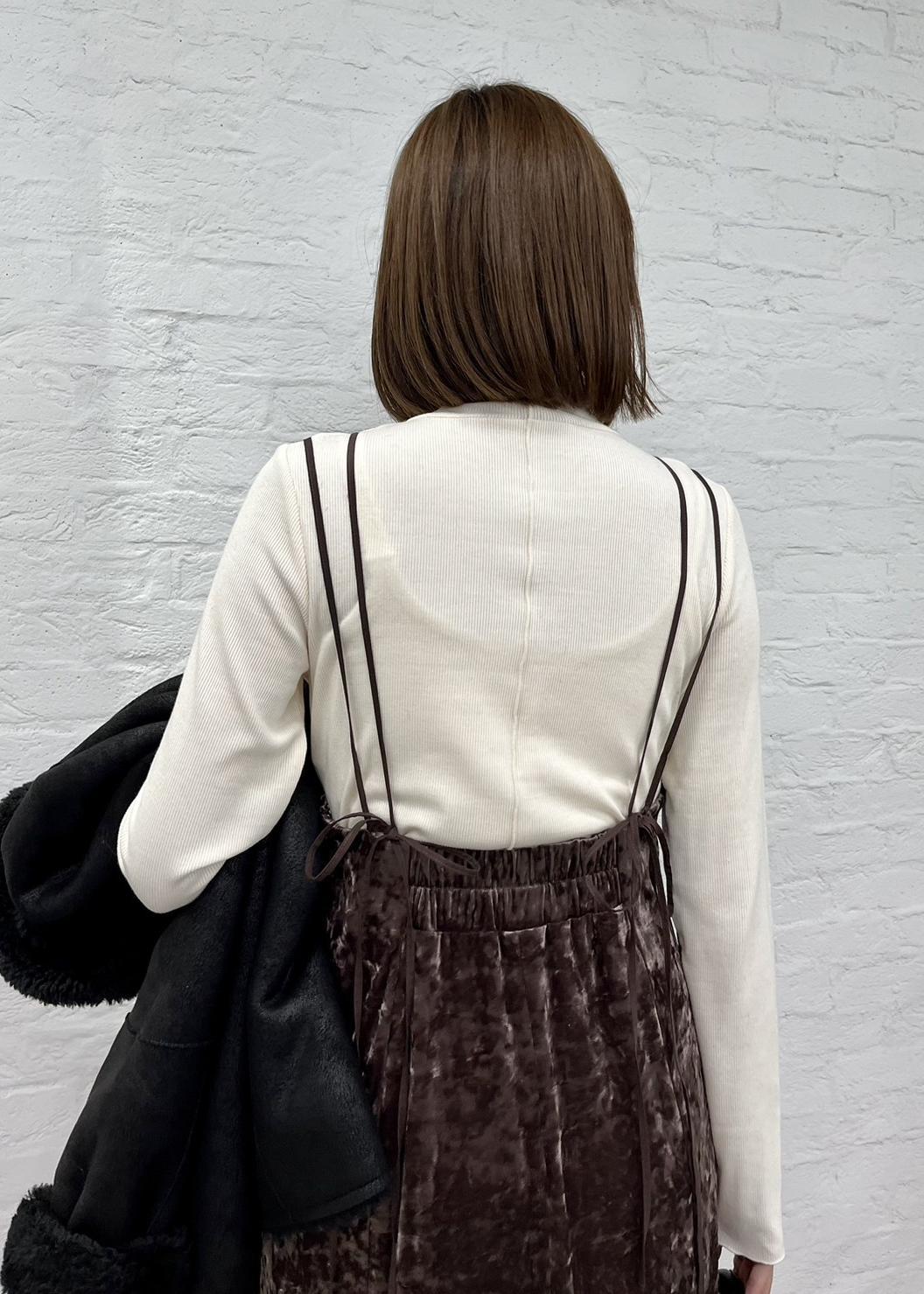 ワンピは後ろの紐を結んで長さ調節ができるので、幅広い身長の方にマッチします!