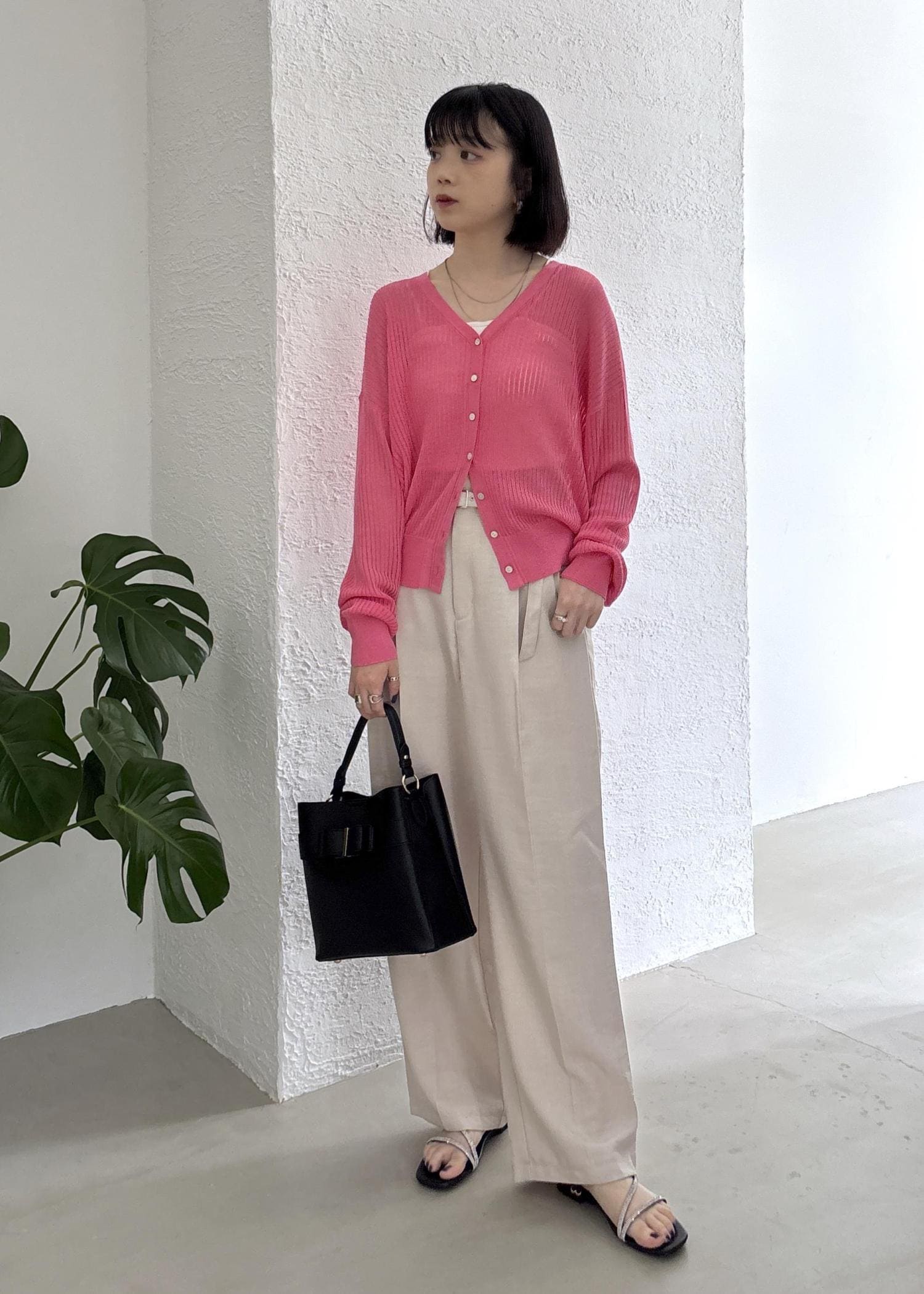 サイドスリットのニットは丈の短い方を着ています。