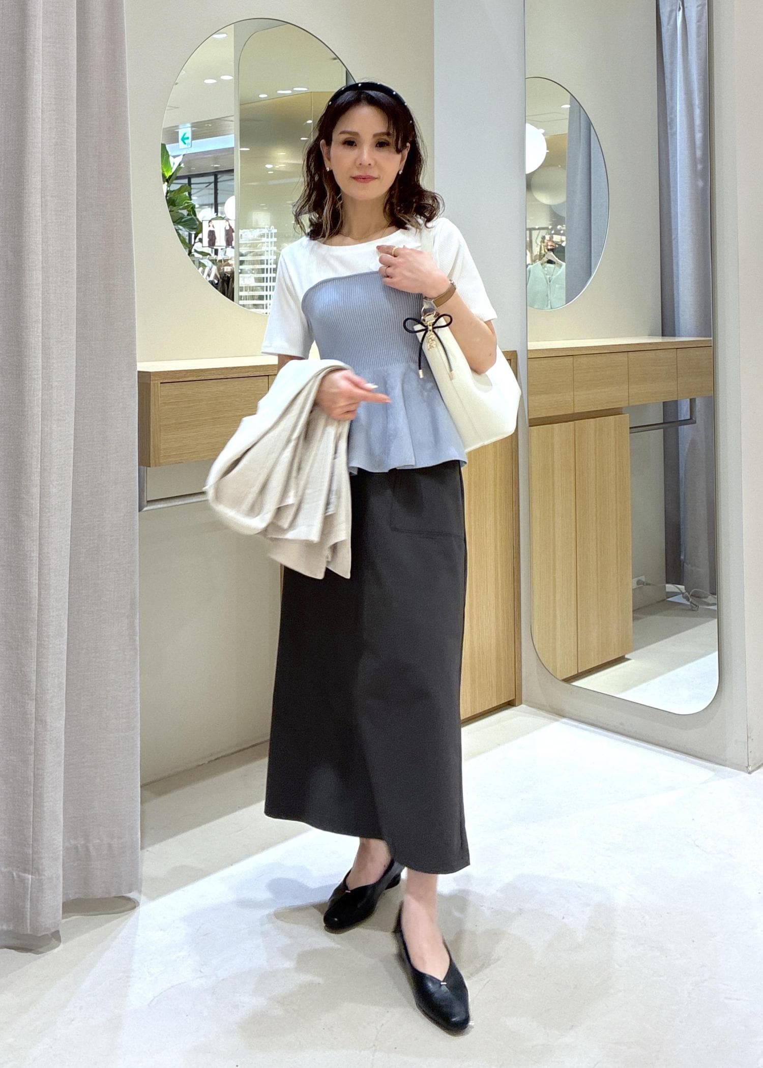 アウトレットVISフェイクレザーIラインロングスカートオフホワイト / S¥2,307レビューほどよくタイトのシルエットで身体のラインを拾わず、スッキリと見せてくれるので、スタイル良く見えます。