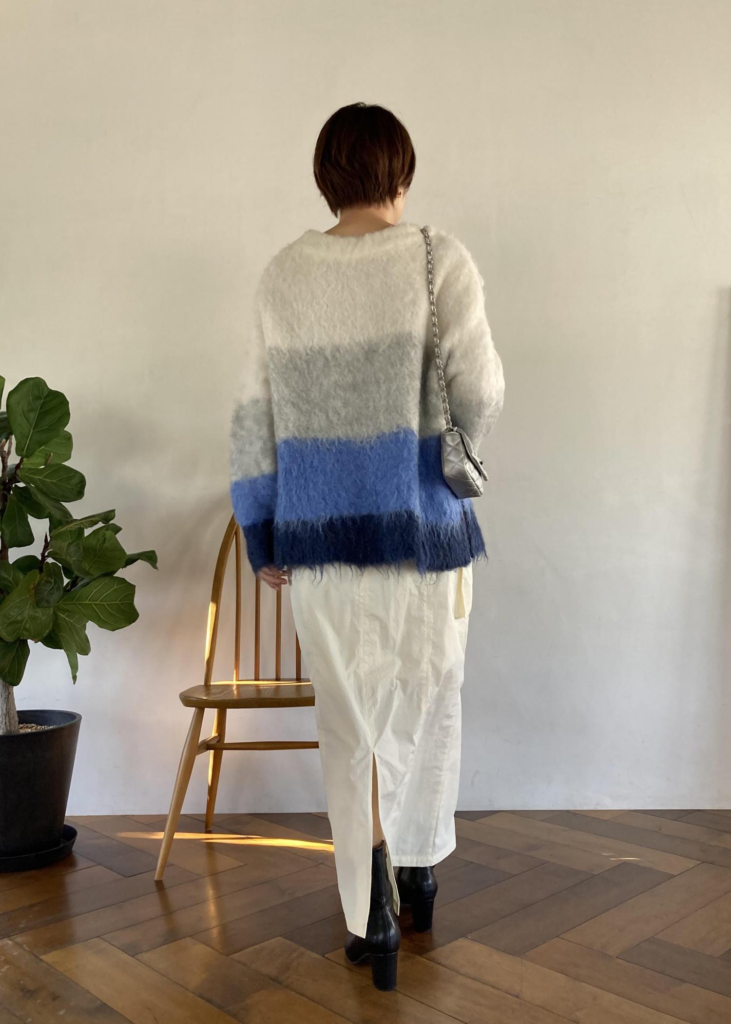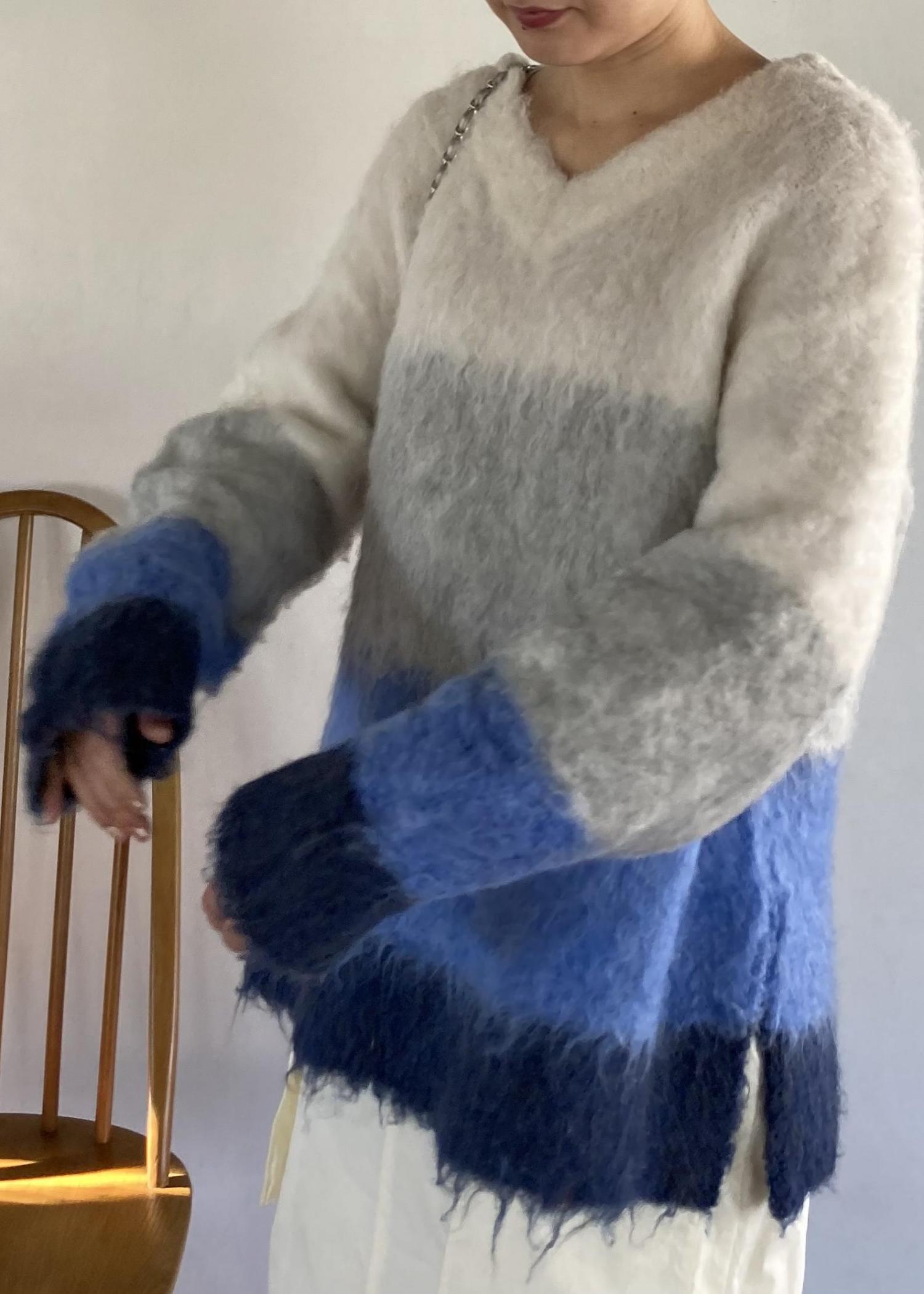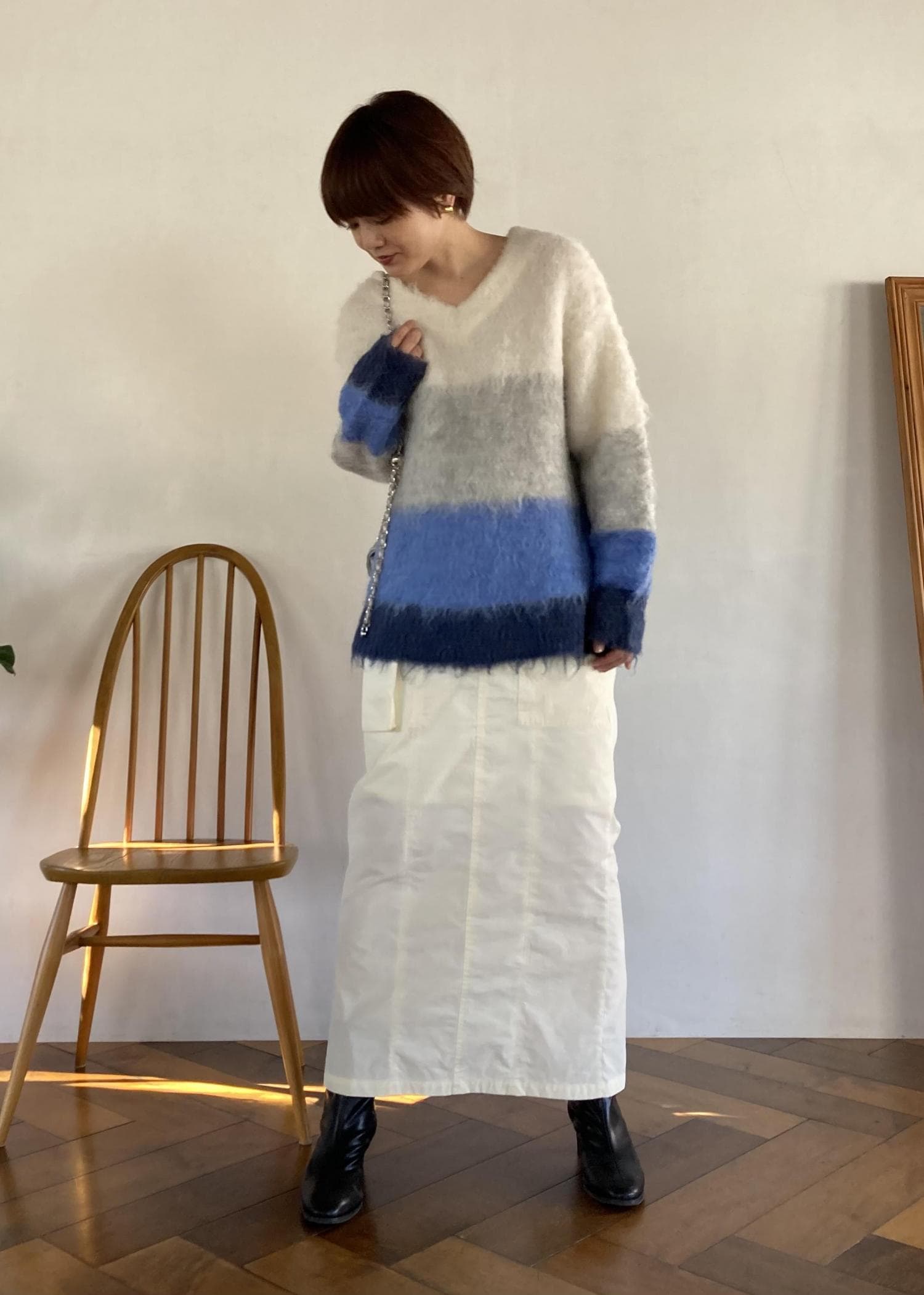 厚みのあるニットですが肩に沿うシルエットで着ぶくれせず、ゆるさが可愛いニットです。 -