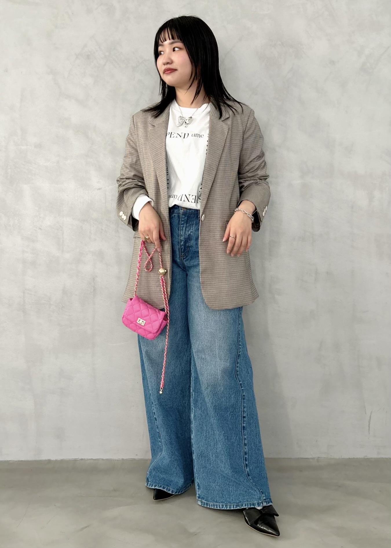 あえてデニムと合わせてカジュアルに着ても可愛い!