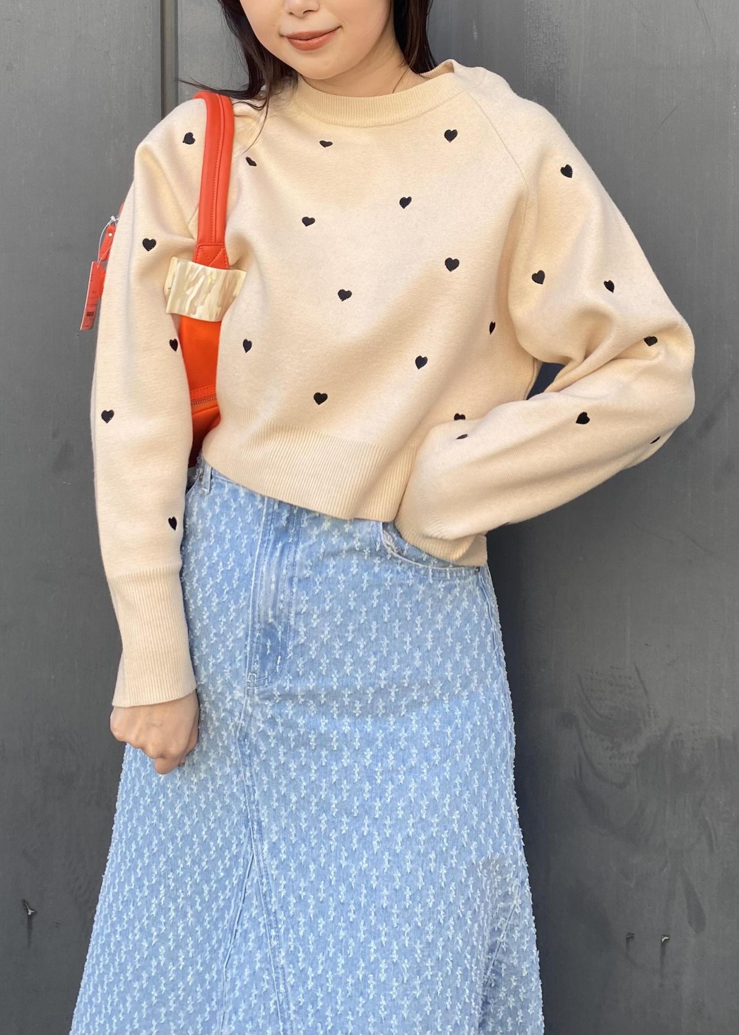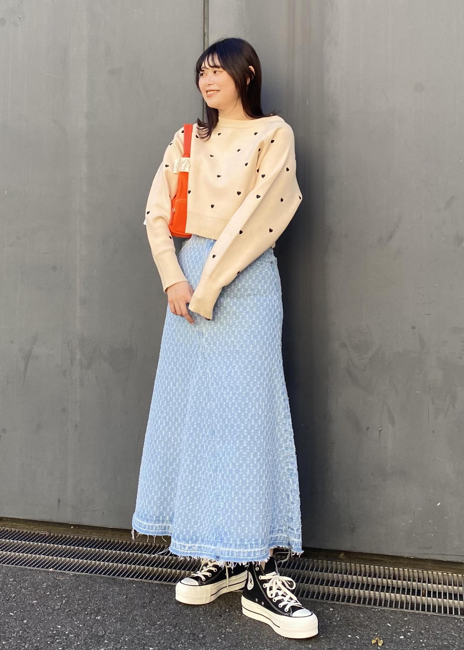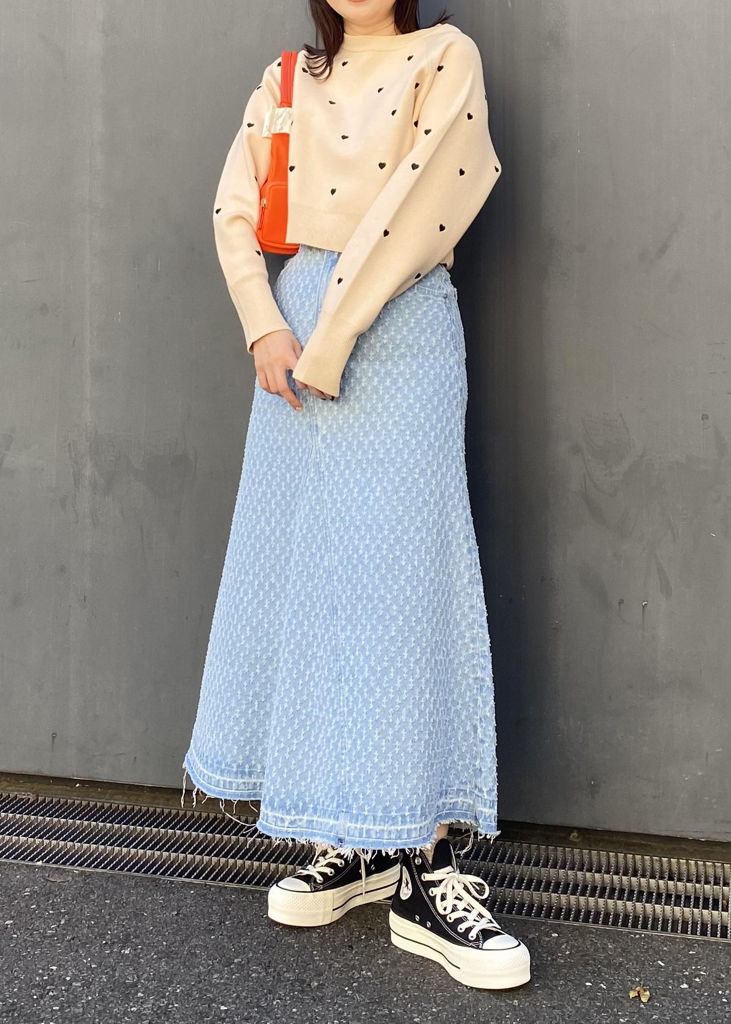 ハートのニットが目を惹くトップスに、デニムスカートはロング丈でバランスをとり、足元は甘すぎずカジュアルにブラックのコンバースで合わせてみました! ご覧いただきありがとうございます! お気に入り機能で見返しも可能です◎ Instagramも更新中です是非チェックしてみてください♡ ルミネエスト LINEで在庫のお問い合わせや商品、コーディネートのご相談など是非お気軽にお問い合わせくださいませ。 LINEで新宿ルミネエストVISスタッフにご相談は【友だち追加】をタップ!!