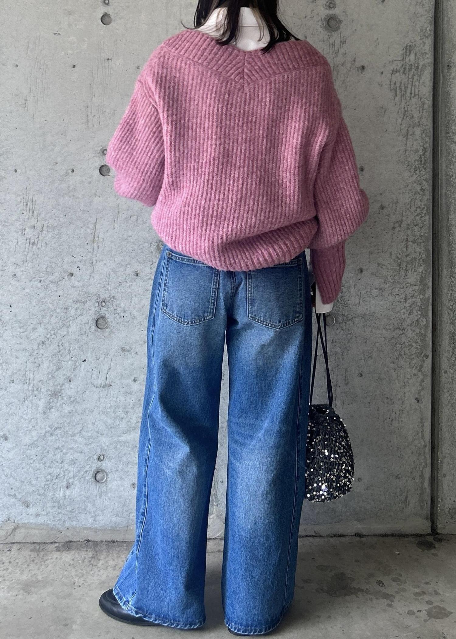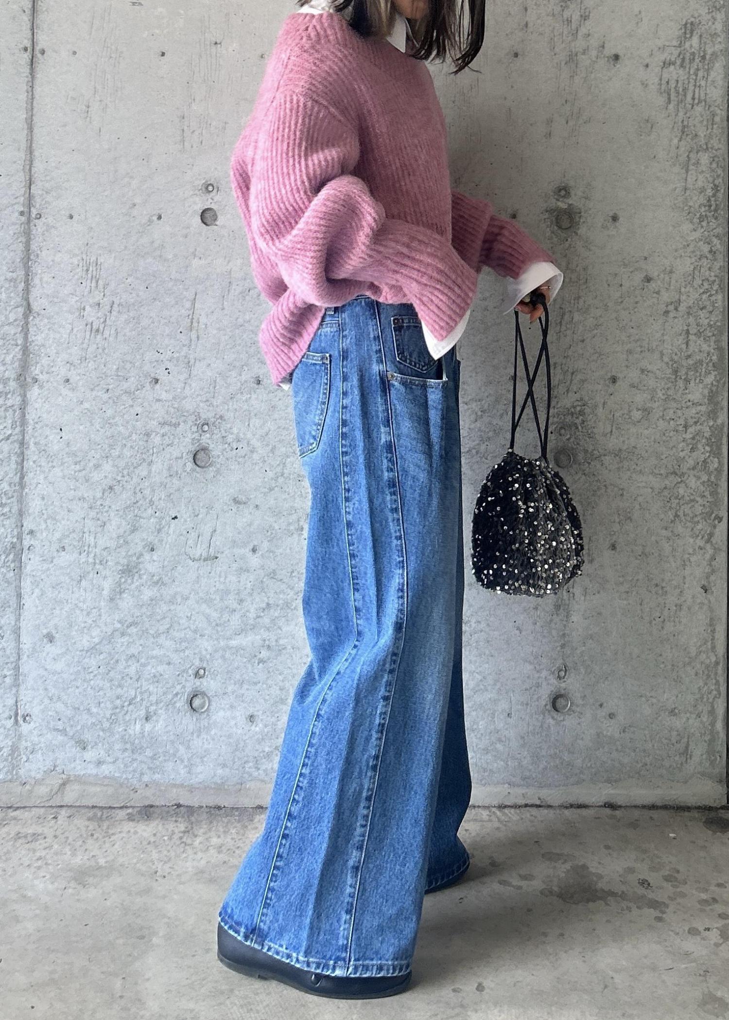 オフショル風に着られるざっくりニットなので、シャツとのレイヤードももたつかずに着られました。