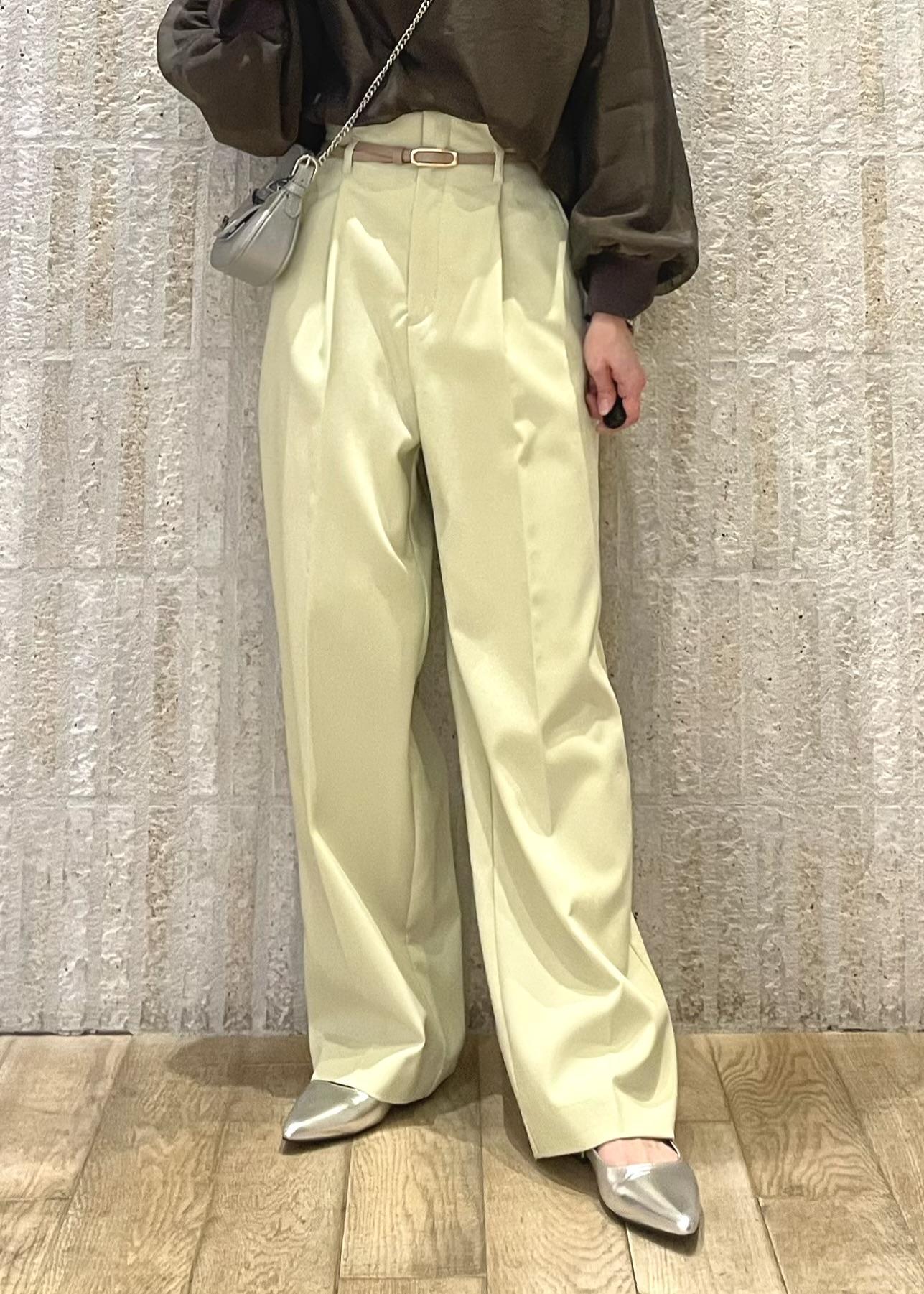 アウトレットVIS【洗える・防シワ】美easy裏起毛ワイドパンツライトグリーン / S¥2,460レビューシルエットがキレイなワイドパンツ♪