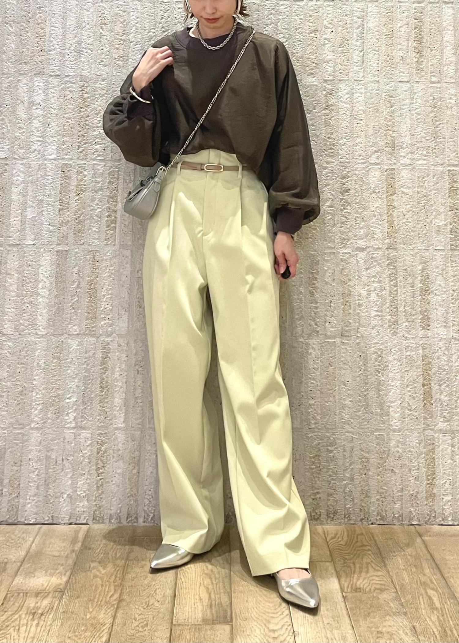 ハイウエストでスタイルがとてもキレイにみえます。イージーケアでシワになりにくいのも嬉しい◎
