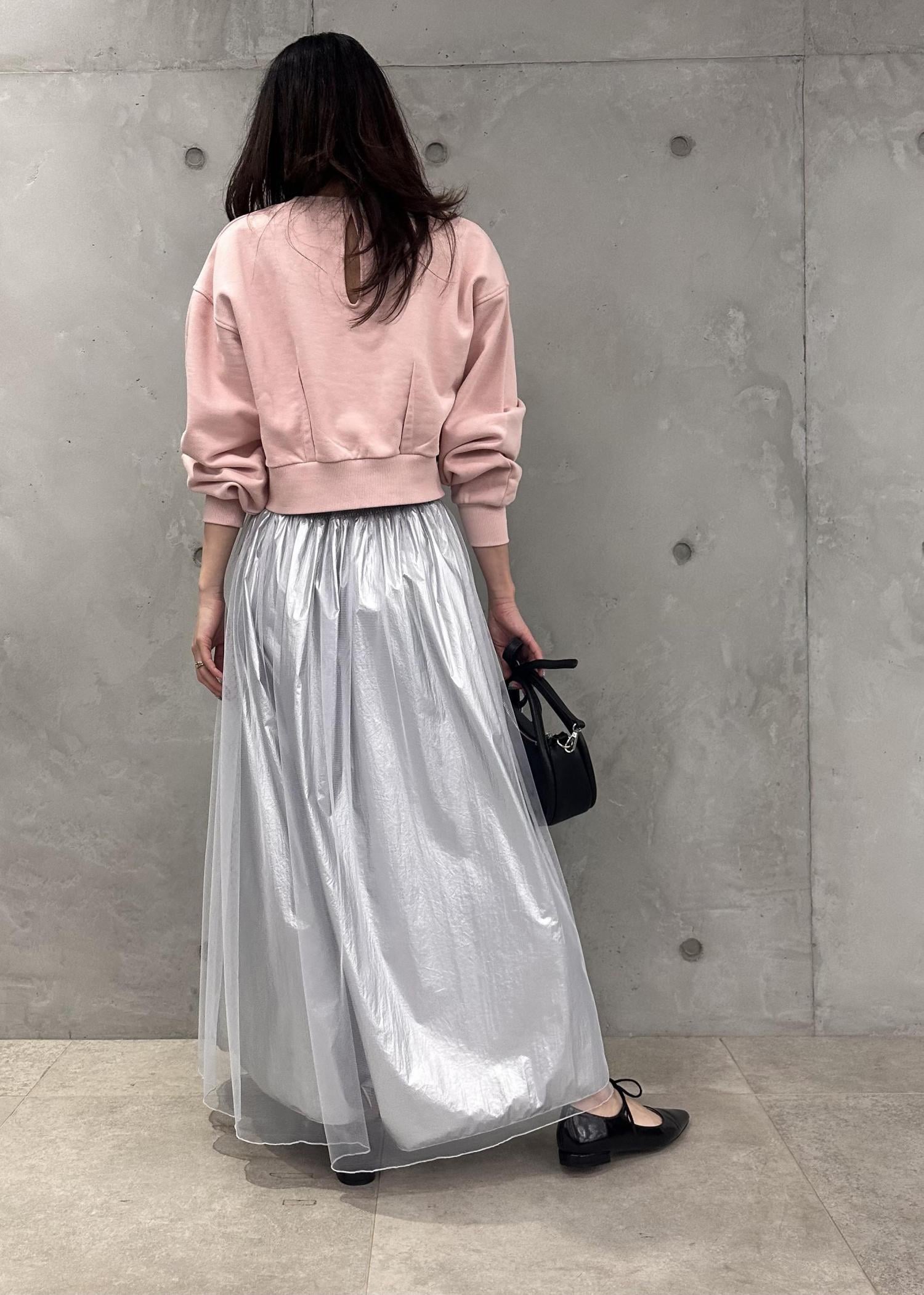 トレンドのシルバーにクールになりすぎないようにスウェット合わせでスポーツMIXなコーディネートにしました!