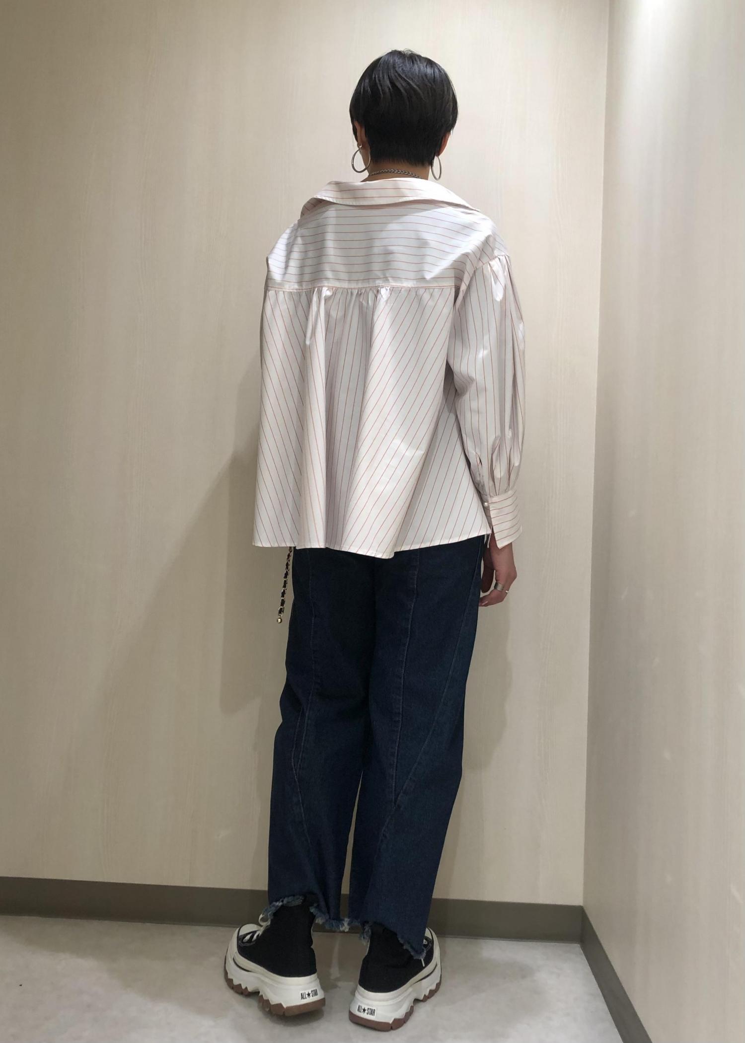 爽やかなオレンジのストライプシャツにデニム合わせ!