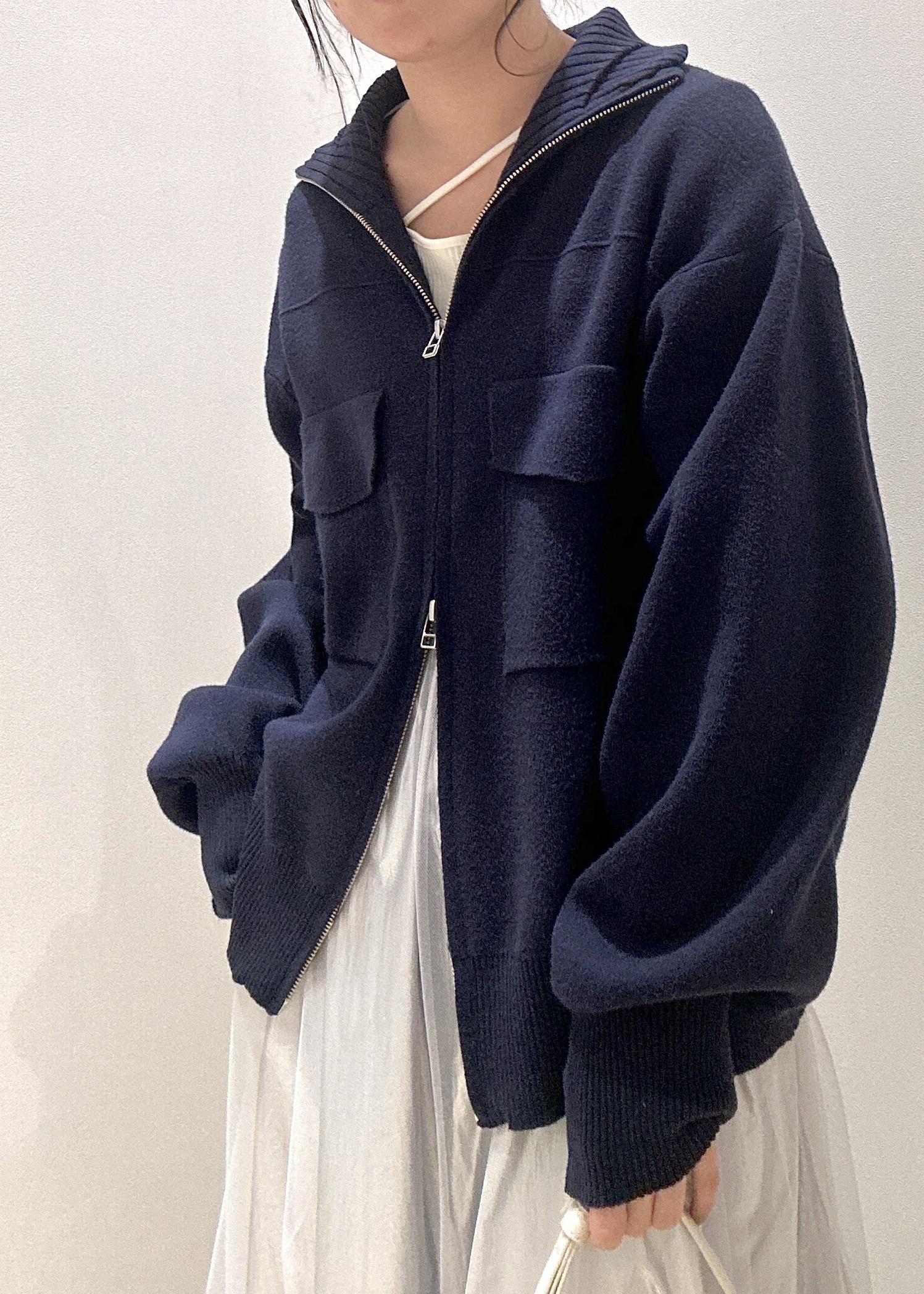 ダブルジップがポイントのオーバーサイズのニットに