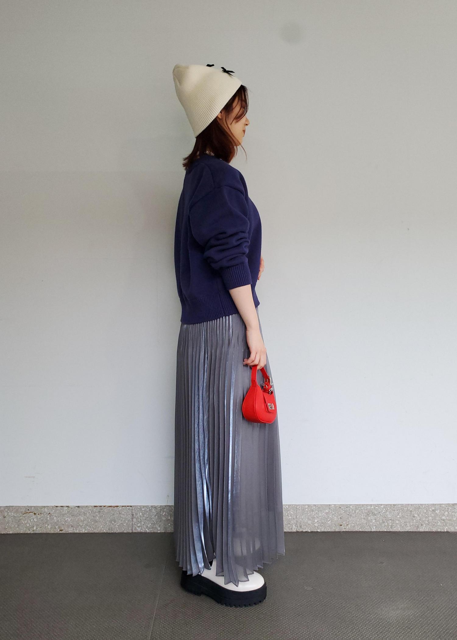アウトレットVISスパークルプリーツスカートシルバー / F¥2,372レビュー150cmでくるぶしが隠れる丈でしたが、裾が程良く透け感があるので、重たい印象にならないです。