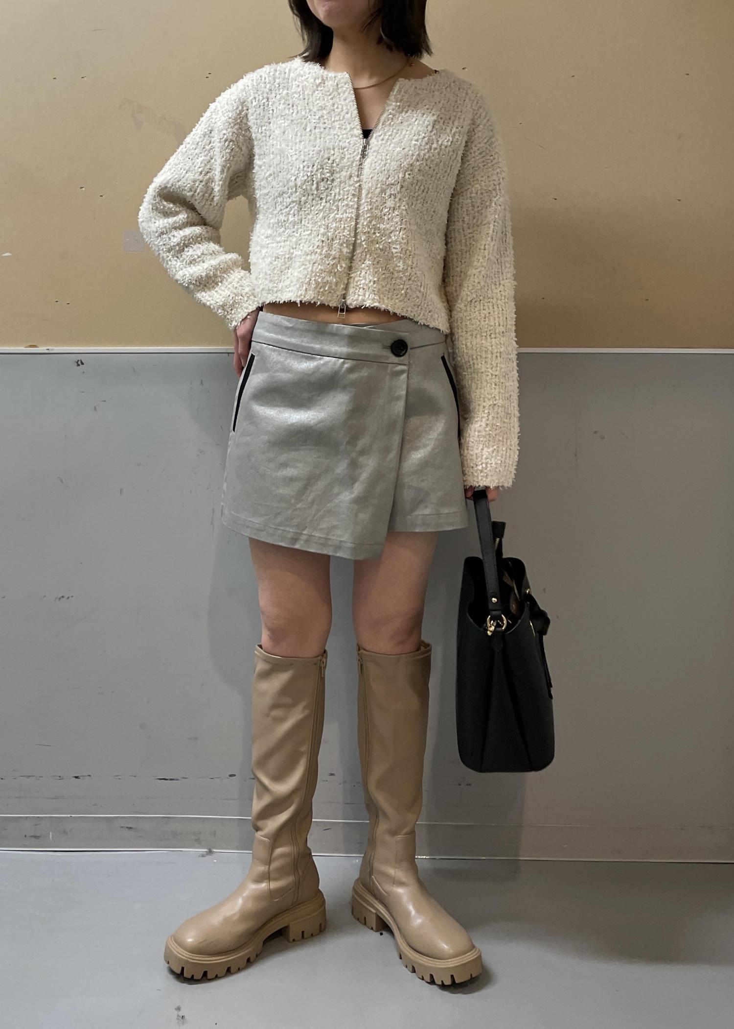 トレンドの箔プリントのボトムには短丈トップスを合わせてカジュアルなコーデに。 私の年齢的にミニ丈ボトムには、ロングブーツで肌見せを抑えるのが着やすいです◎ 【information】 ▷お気に入りの投稿やスタッフをハートボタンからお気に入りに追加していただくと、《お気に入り》タブから、投稿をご覧いただきやすくなりますのでぜひお試しくださいませ☺︎ LINEで在庫のお問い合わせや商品、コーディネートのご相談など是非お気軽にお問い合わせくださいませ。 LINEで東京ソラマチVISスタッフにご相談は【友だち追加】をタップ!!