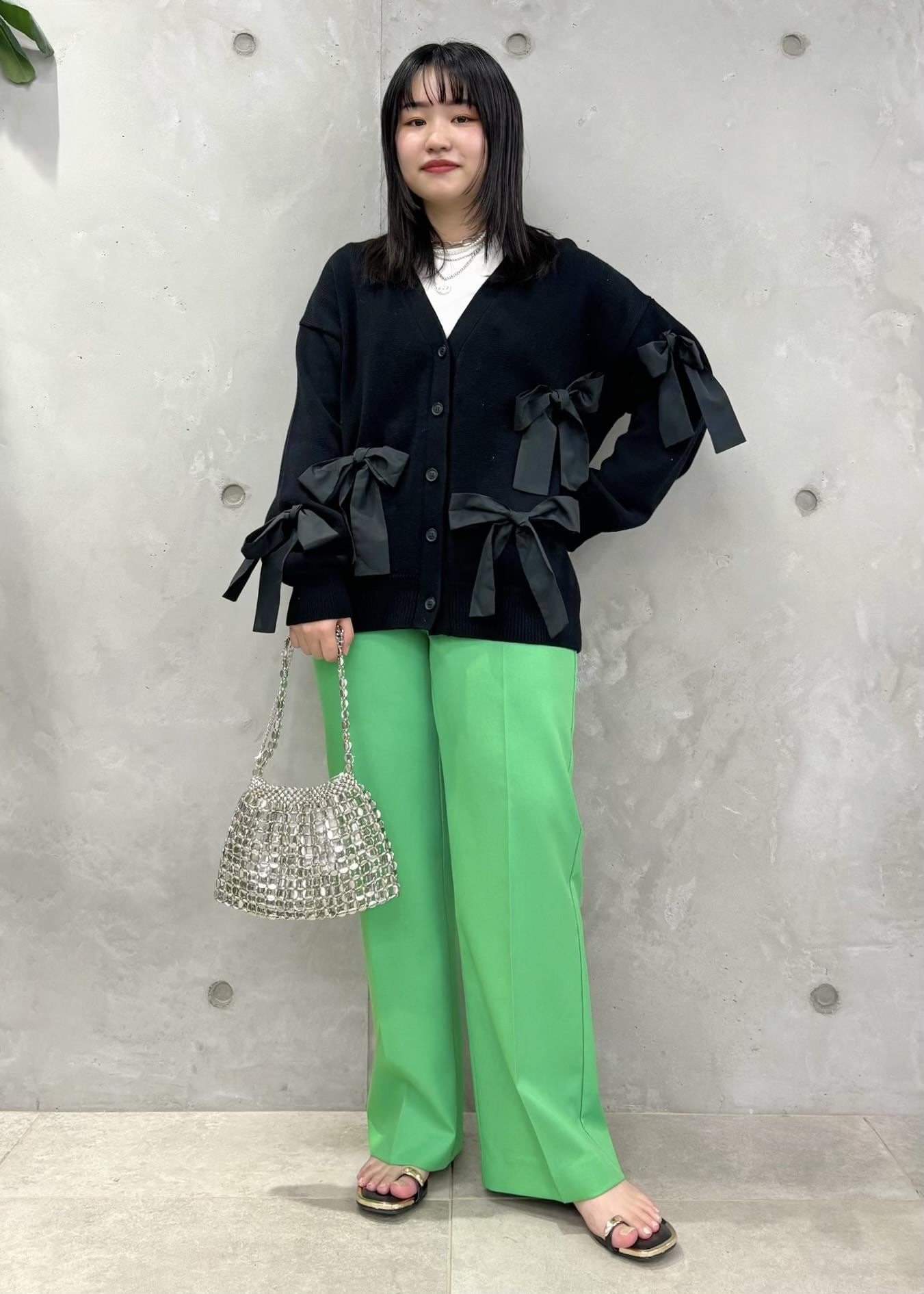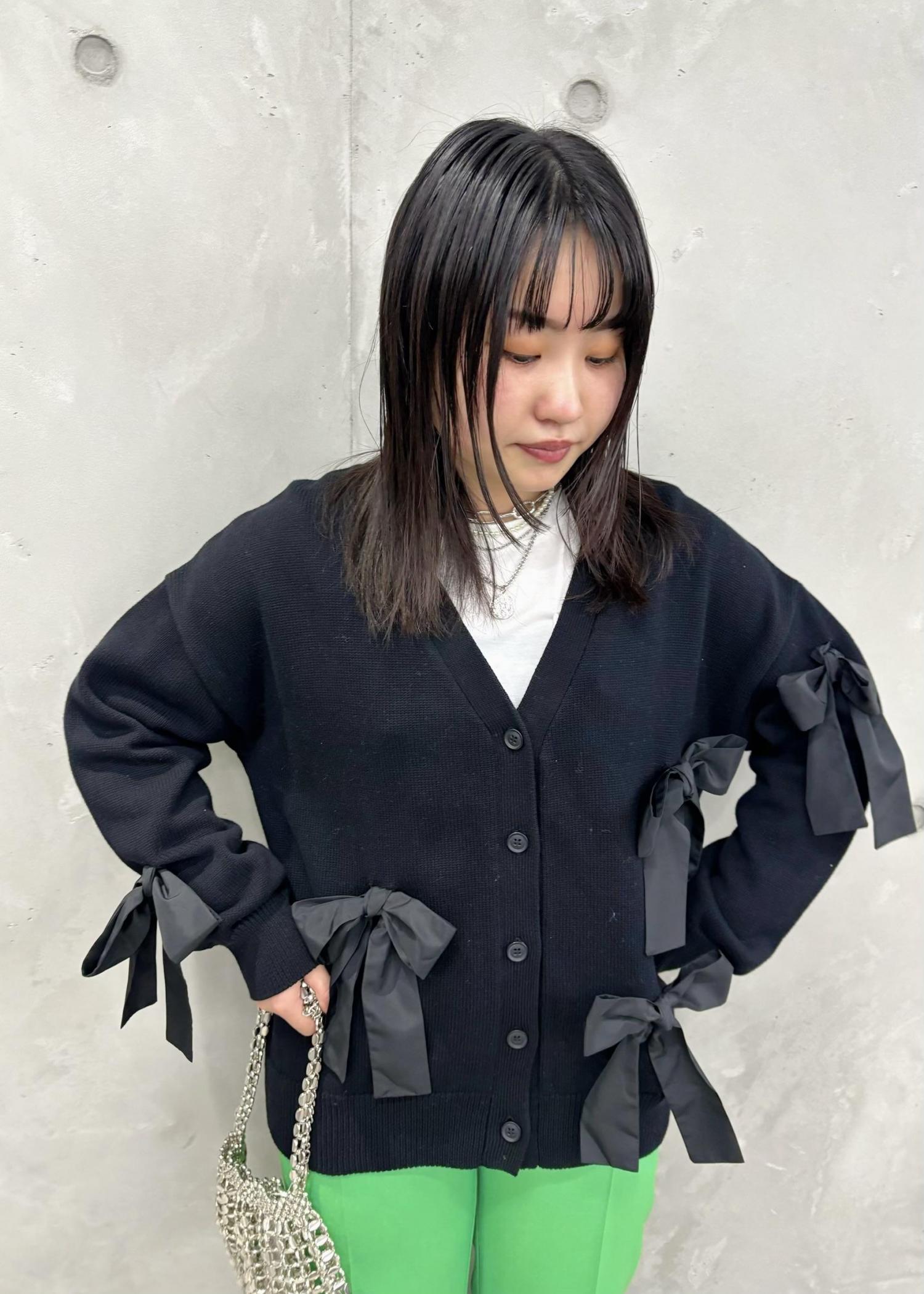 リボンが映え、さらにカラーもポイントなコーデ♡
