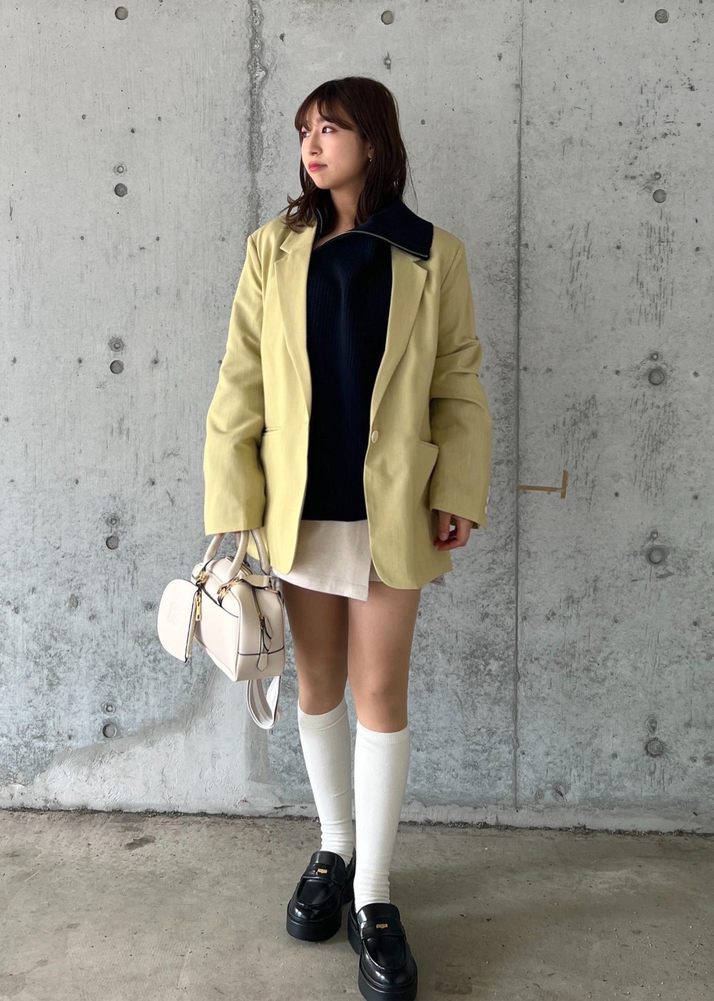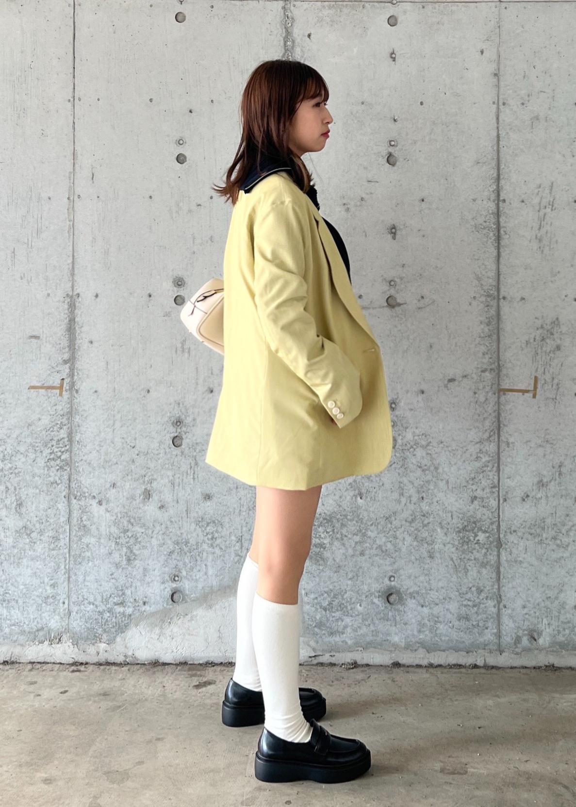 前が短めなので、低身長さんもアウトスタイルでバランスよく着れます! -