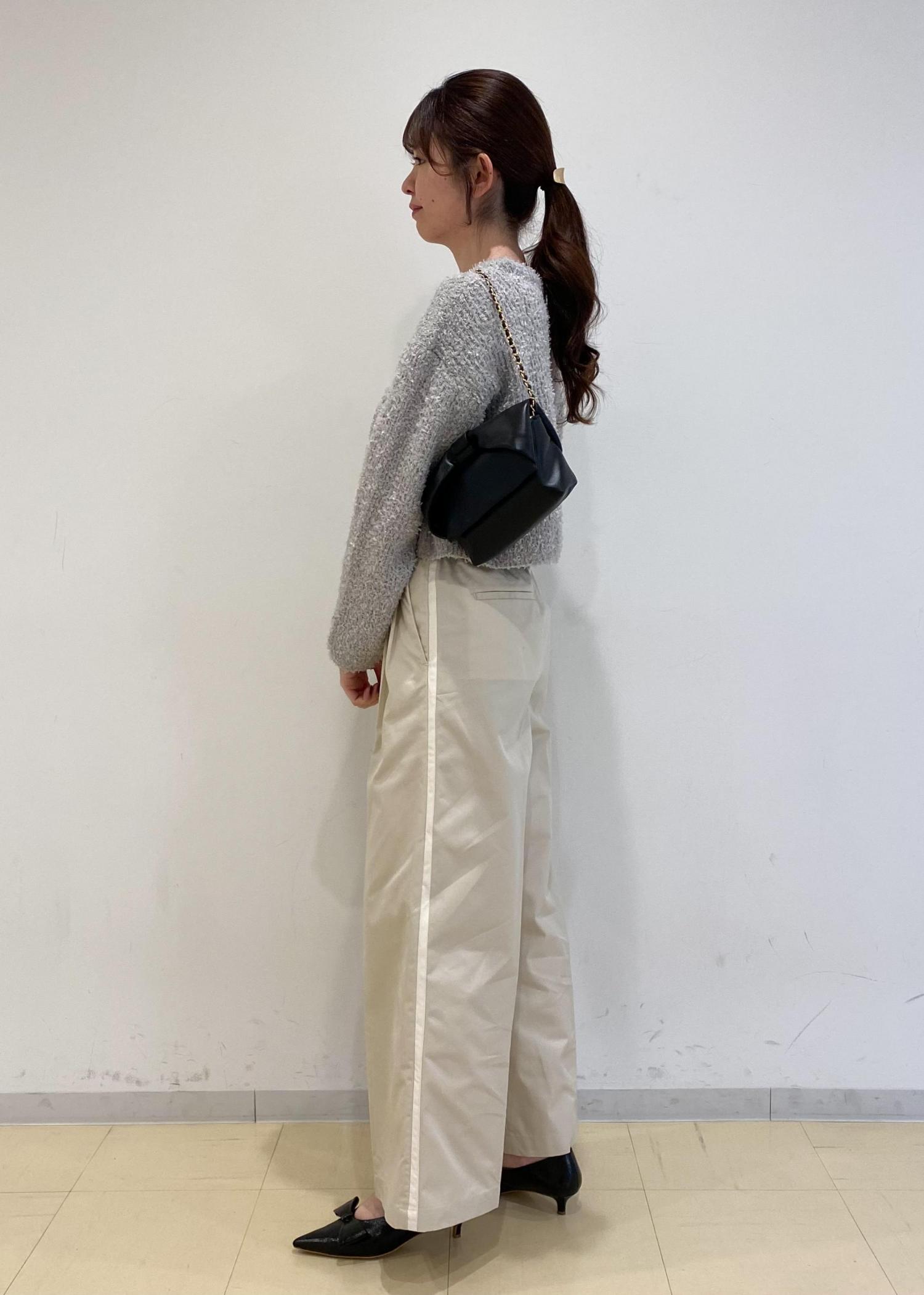 パンツがハイウエストなので、短丈のトップスと合わせるとスタイルアップ効果も◎