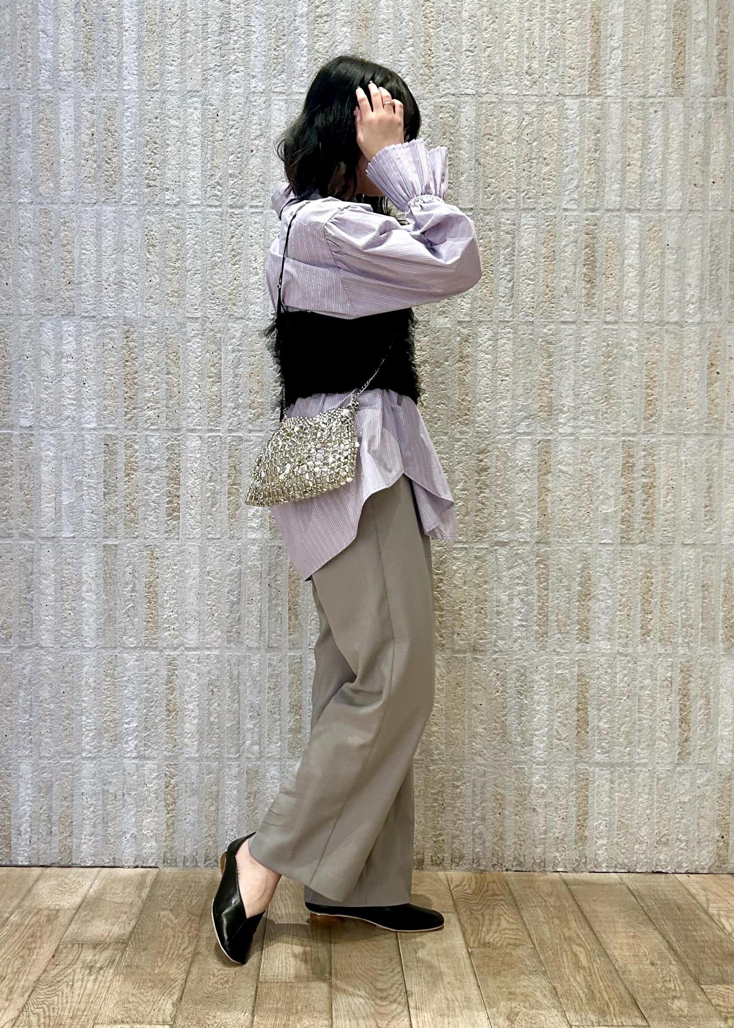 パープル系のストライプシャツに 黒のビスチェ×グレーのパンツで 大人っぽさとスタイリッシュ感がでるように組み合わせました! 小物は光ものを使うと◎ ____________________ LINEで在庫のお問い合わせや商品、コーディネートのご相談など是非お気軽にお問い合わせくださいませ。 LINEで二子玉川ライズVISスタッフにご相談は【友だち追加】をタップ!!