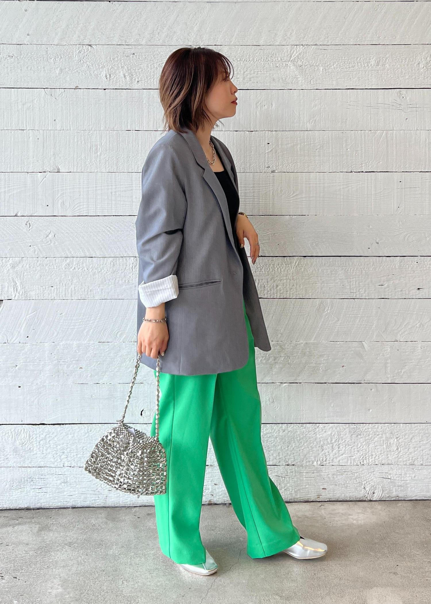 アウトレットVIS美HITワンタックストレートパンツ【洗える】グリーン / S¥2,372レビュー身長152cmでフラットシューズでもギリギリ床につかない丈感です。