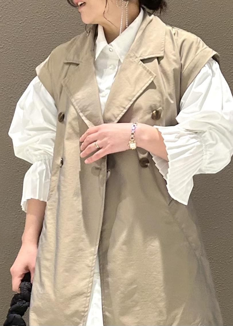 アウトレットVISマルチWAYミドル丈ジレトレンチカーキ系 / F¥3,597レビューすごく軽い着心地で薄手な素材なのでこれから長く活躍します。マルチWAYでベストにもできるので着回しの幅が広がり、色々なスタイリング楽しめます。腕回りもゆとりがあるため、インナーも色々試しやすい。