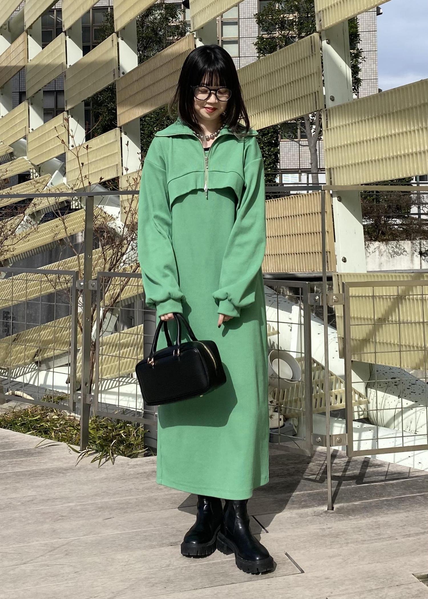 【洗える】ショートジップカーディガン/リブカットソーワンピース【SET】