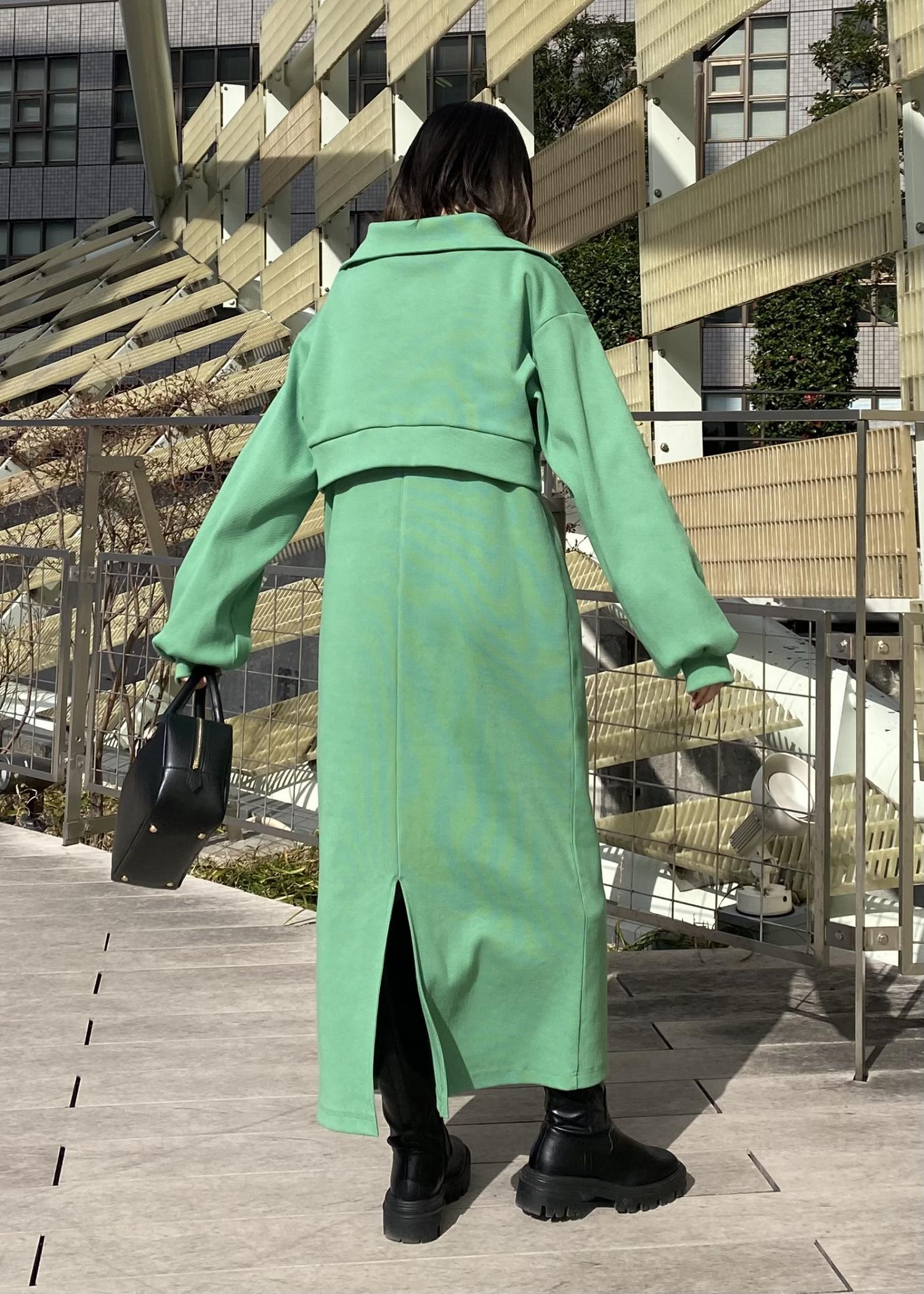 リブカットソーワンピースとショート丈カーディガンのセットアイテム!