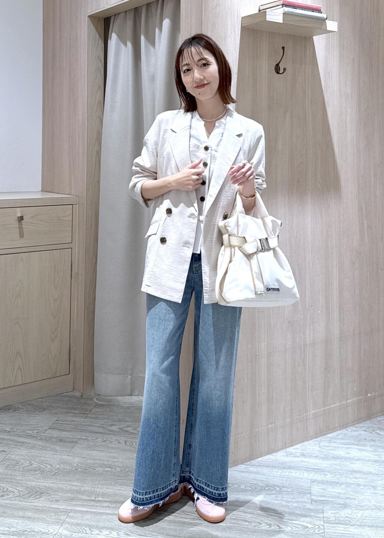 アウターは2wayなのでトレンチコートとして合わせても◎