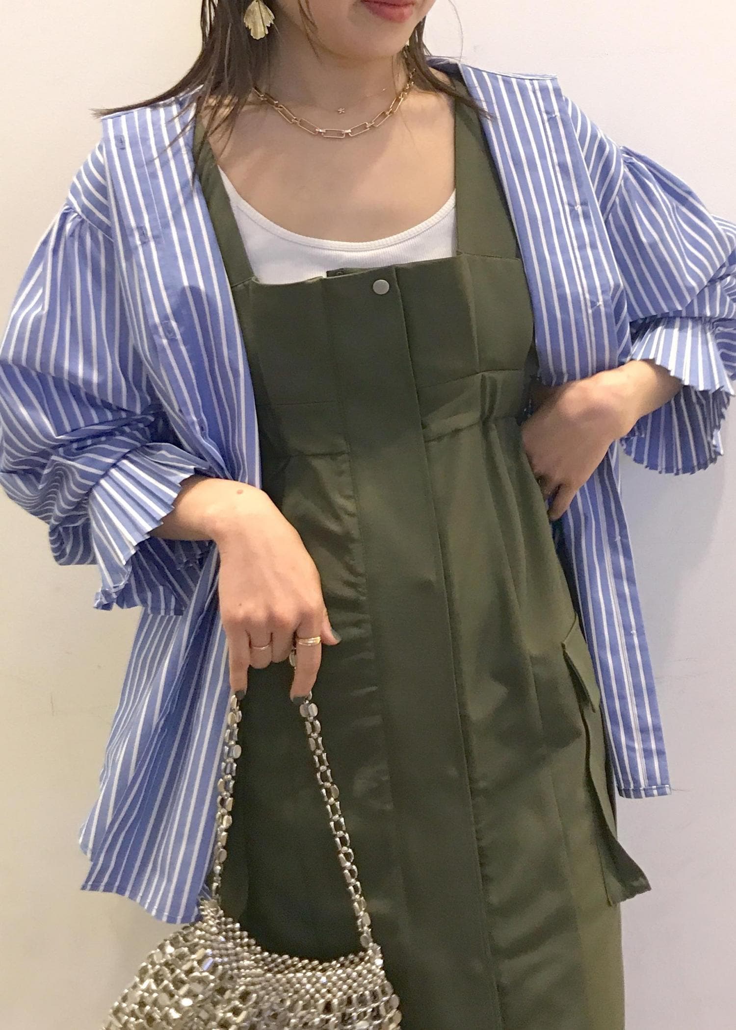 ミリタリーワンピに シャツをざっくり合わせました。 3首(首、手首、足首)を見せて 抜け感をプラスしました! ♡お気に入り登録やフォローして頂くと、 気になるアイテムやコーディネートを いつでもすぐにチェックできます♪ LINEで在庫のお問い合わせや商品、コーディネートのご相談など是非お気軽にお問い合わせくださいませ。 LINEで横浜ポルタVISスタッフにご相談は【友だち追加】をタップ!!
