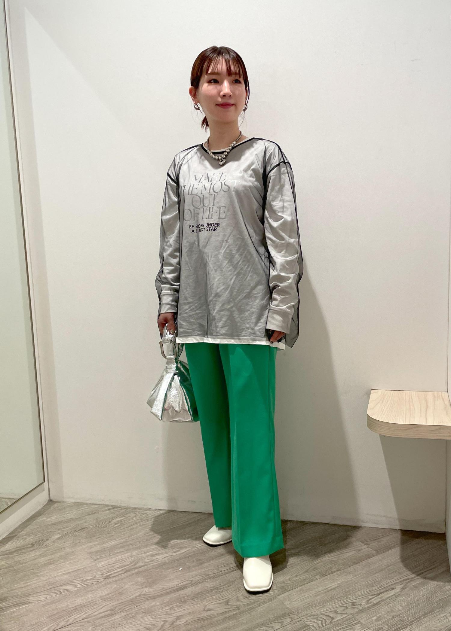 ウエストが若干緩めでしたので、ベルト着用もおすすめです◎ストンと綺麗に落ちているシルエットでとても綺麗です。 -