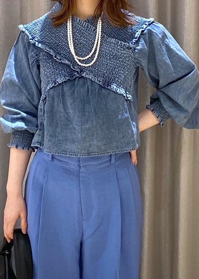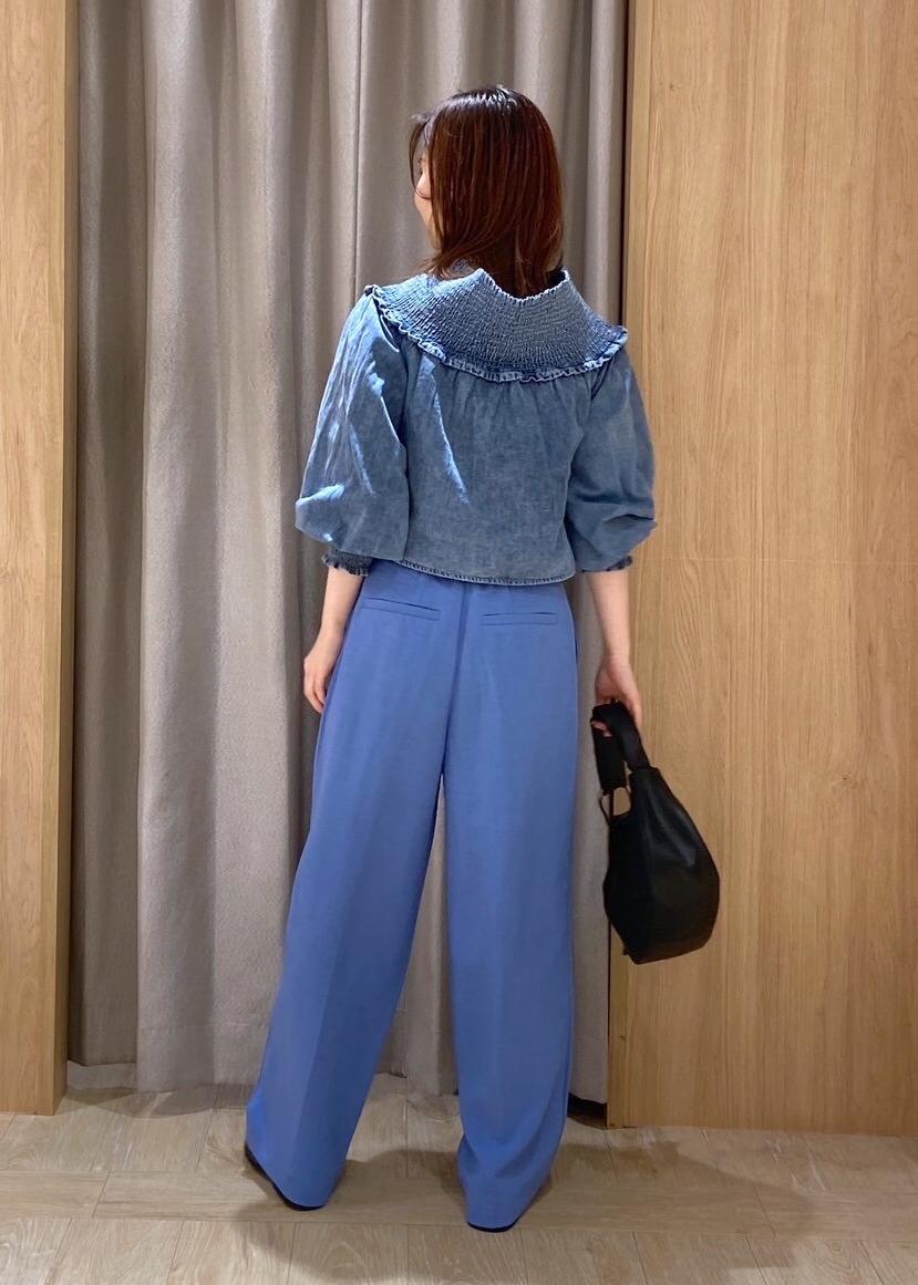 デニムライクのブラウスを使ったワントーンコーデ。 トップスがフェミニンなので、ワイドパンツを合わせてエレガントな印象にしました。 小物も黒で揃えると、より統一感が出ます。 LINEで在庫のお問い合わせや商品、コーディネートのご相談など是非お気軽にお問い合わせくださいませ。 LINEで上大岡ウィングVISスタッフにご相談は【友だち追加】をタップ。