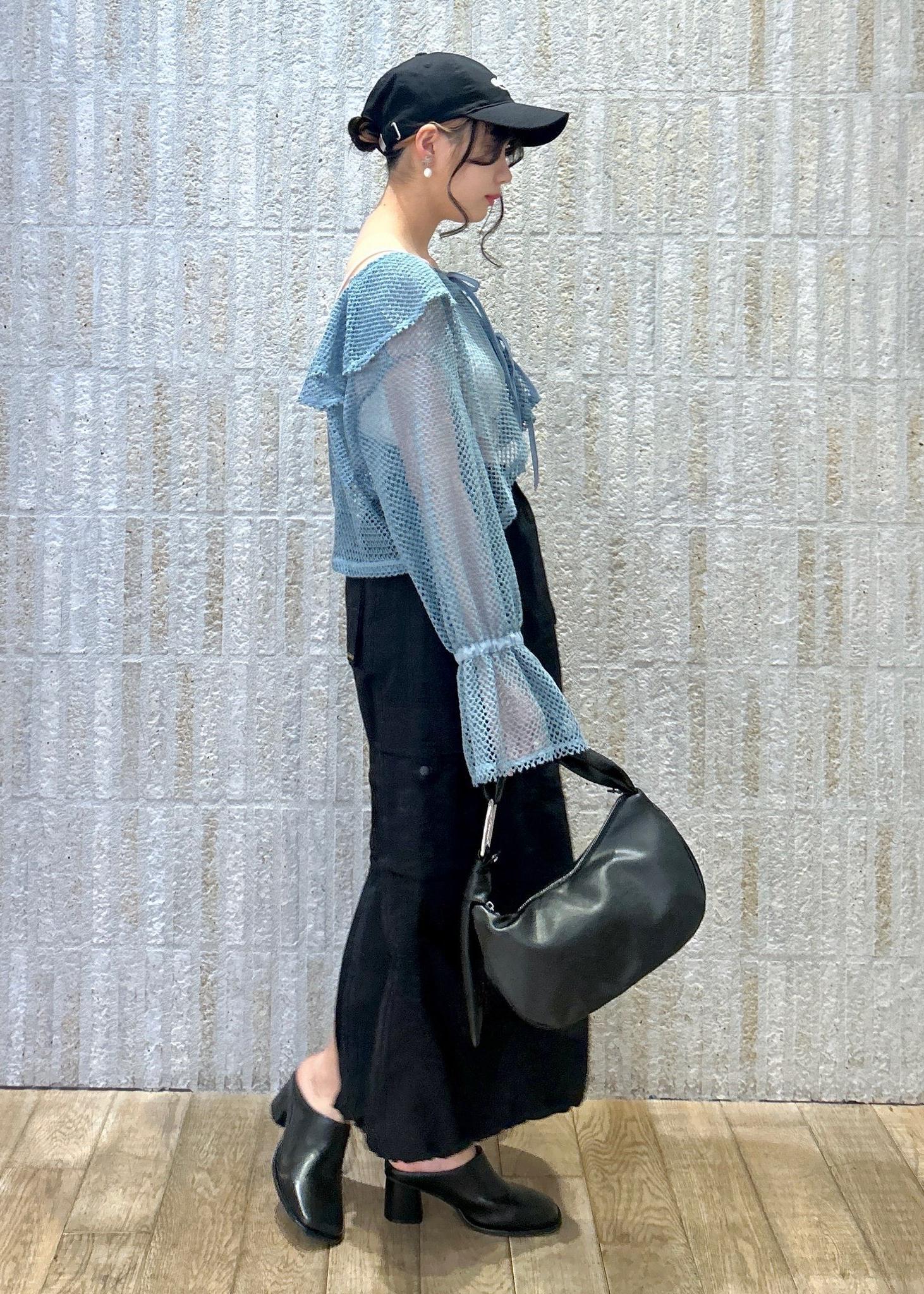 アウトレットVIS【前後2WAY】メッシュフリルカーディガンサックス / F¥1,647レビューカーディガンとブラウスの前後両面着れるような