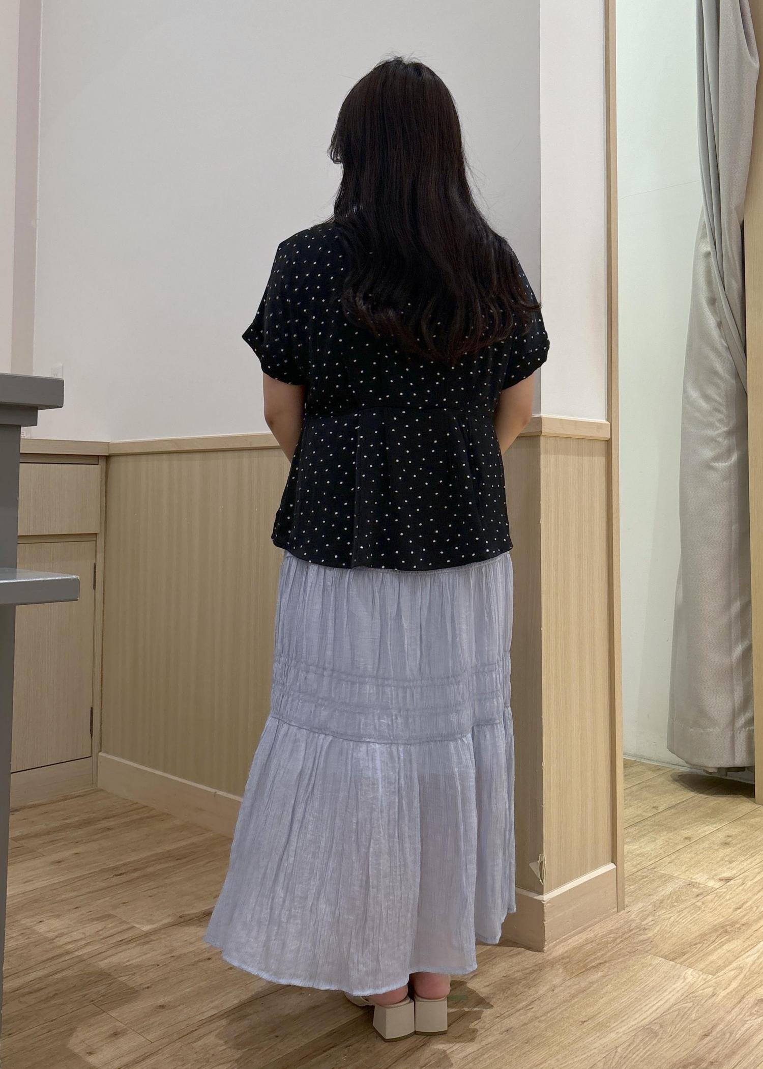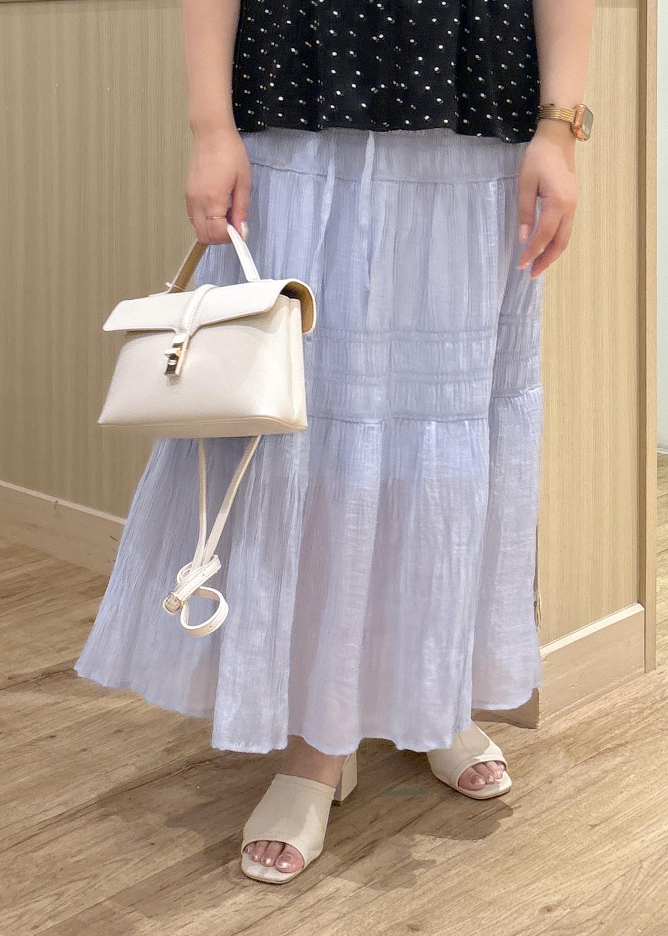 トップスとボトム、共にサラッとした 夏にぴったりの快適コーディネート♪ ブラウスをブラックにした分 他のアイテムをライトカラーにしバランスをとっています☺︎! こちらのコーディネートがいいなと思った方は"♡"ボタンを押してお気に入り追加していただくと、 【お気に入り】タブから投稿をご覧頂きやすくなります☺︎! VISららぽーとEXPOCITY店の在庫状況に関するお問い合わせや、 コーディネートのご相談など、 下記【友だち追加】より、 ぜひお気軽にメッセージ下さいませ♪