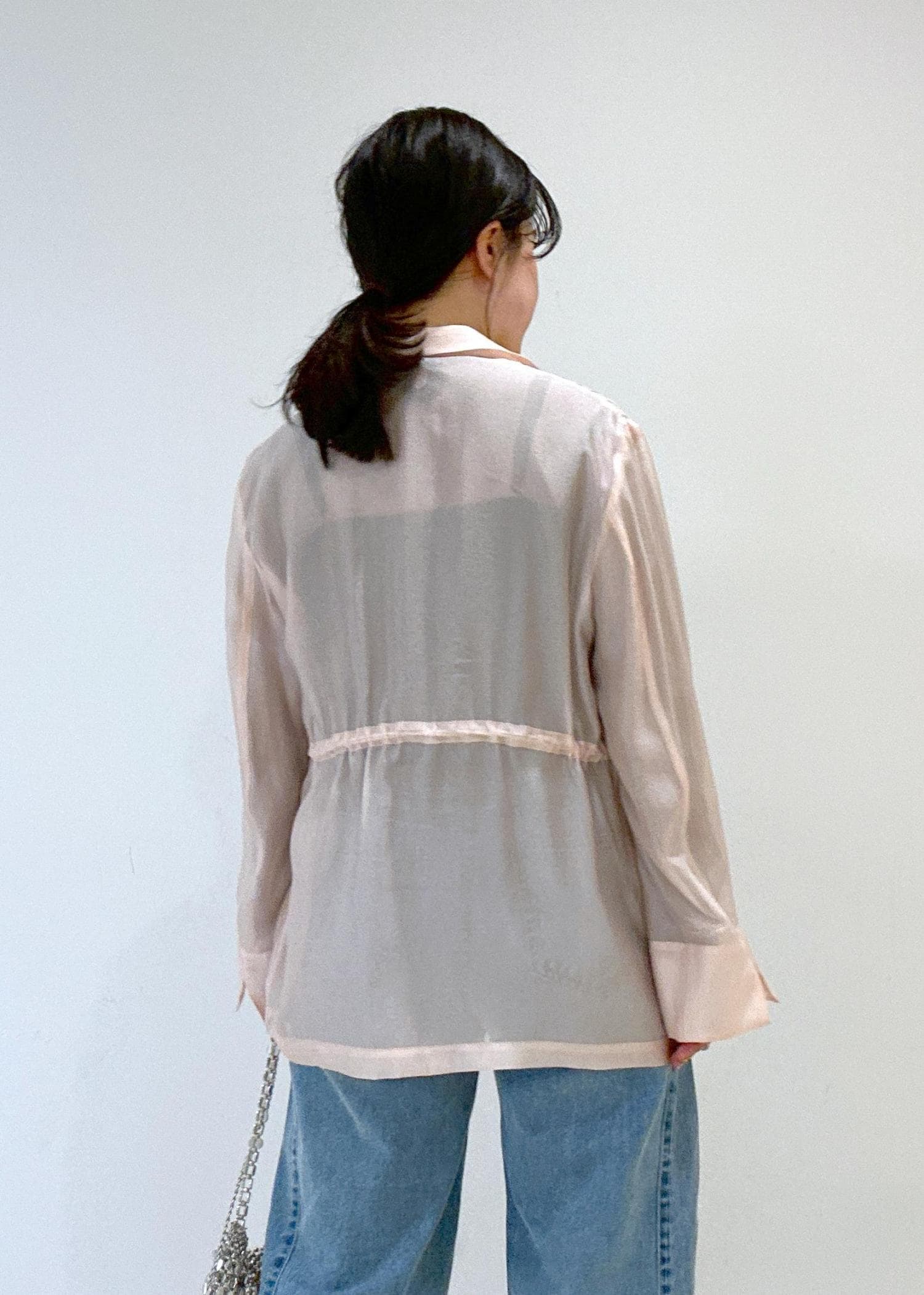 袖部分はゆとりのあるサイズ感なので、1枚でも着ていただきやすいです。 -