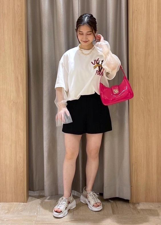 アウトレットVISリネンライクミニ丈パンツブラック / S¥2,372レビュー150cmでSサイズを着用して、太ももが半分くらい隠れる丈でした。