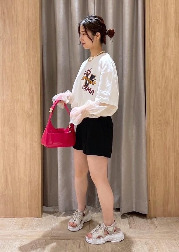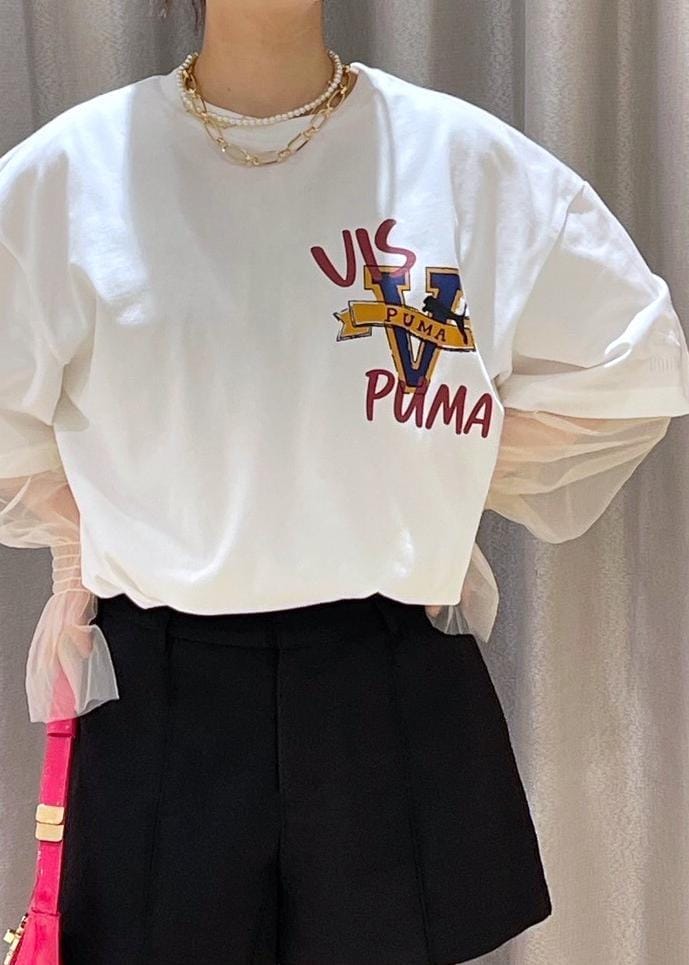 アウトレットVIS【PUMA】VIS別注 オリジナルロゴオーバーサイズTシャツホワイト系 / M¥3,850レビュー150cmでMサイズを着用して、ヒップまで隠れる丈でした。