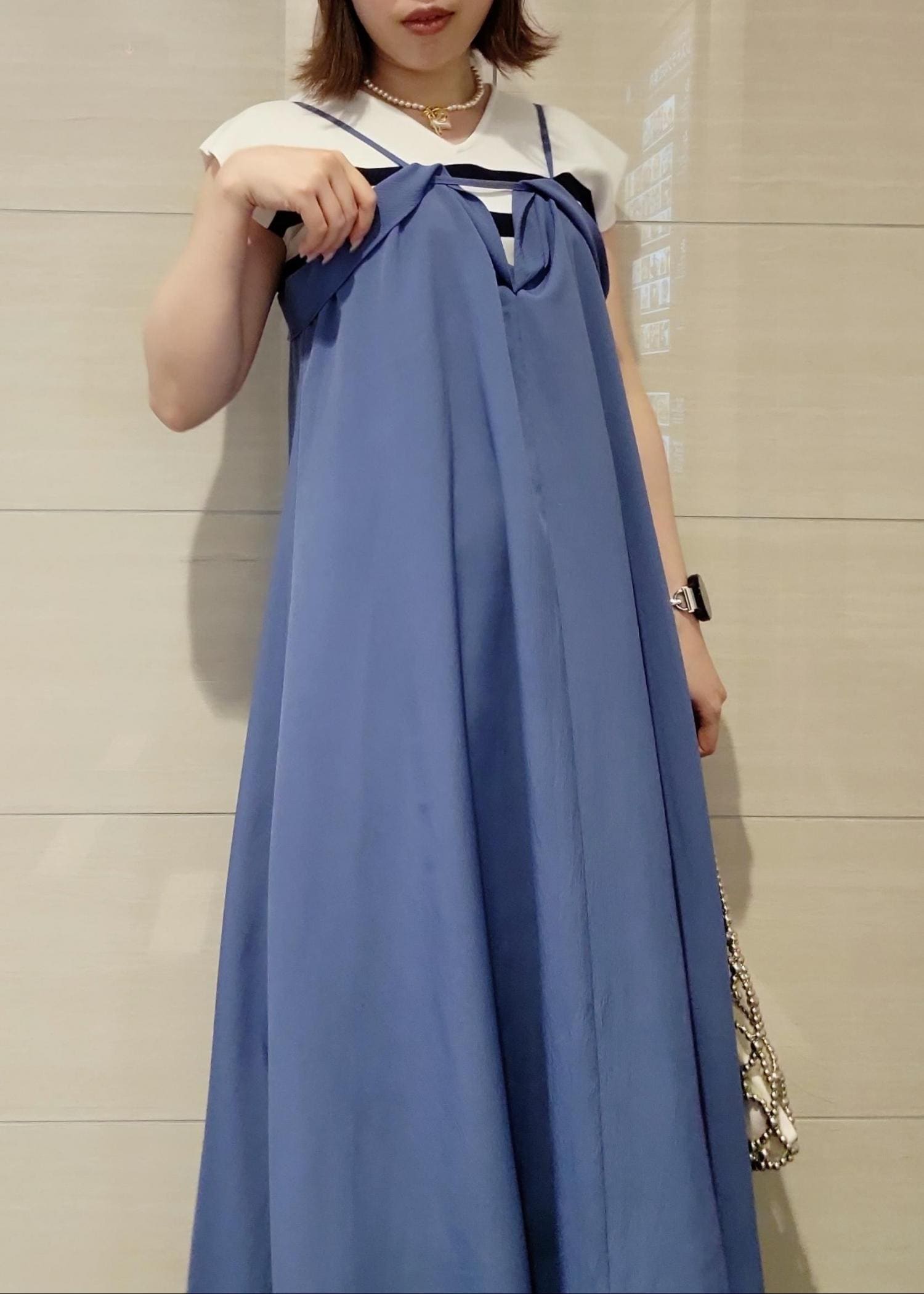 アウトレットVISレイヤーデザインキャミワンピース【洗える】ブルー系 / F¥3,295レビューAラインに広がるシルエットが綺麗なキャミワンピです。