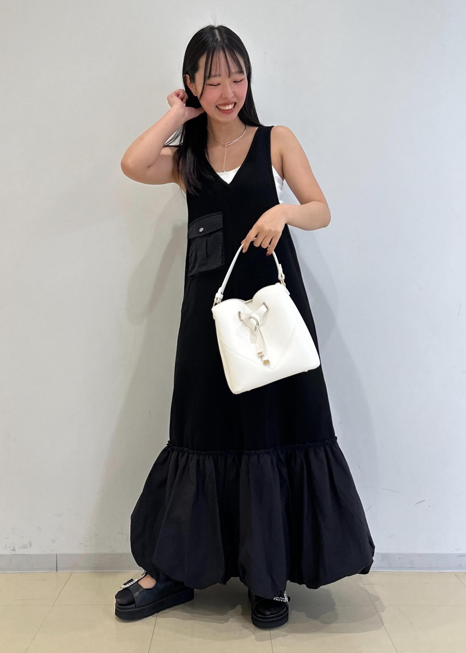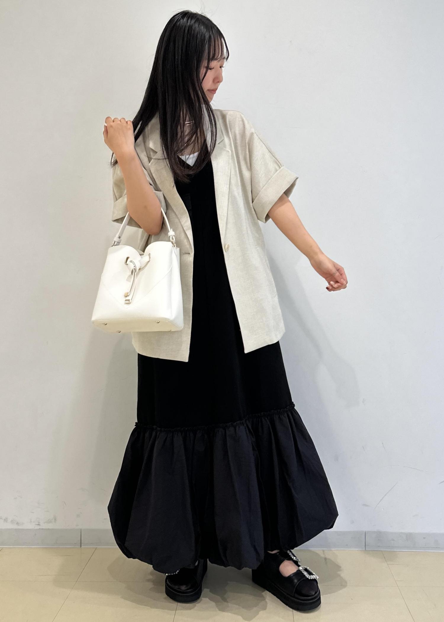 夏は涼しさが大事なので、ブラックは挑戦しにくいですが、このワンピースなら程よい肌見せで夏を感じられます♪