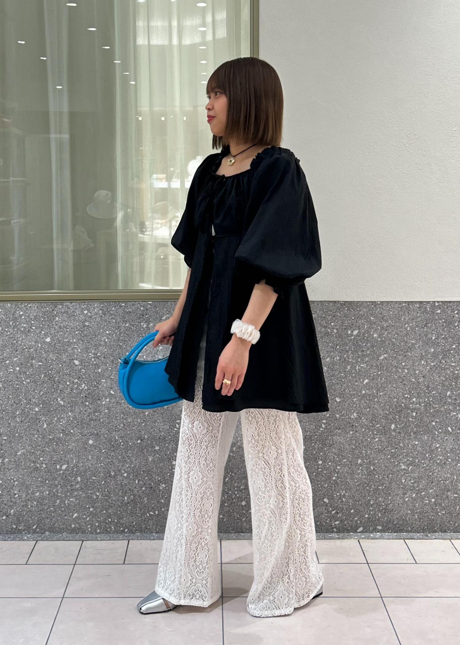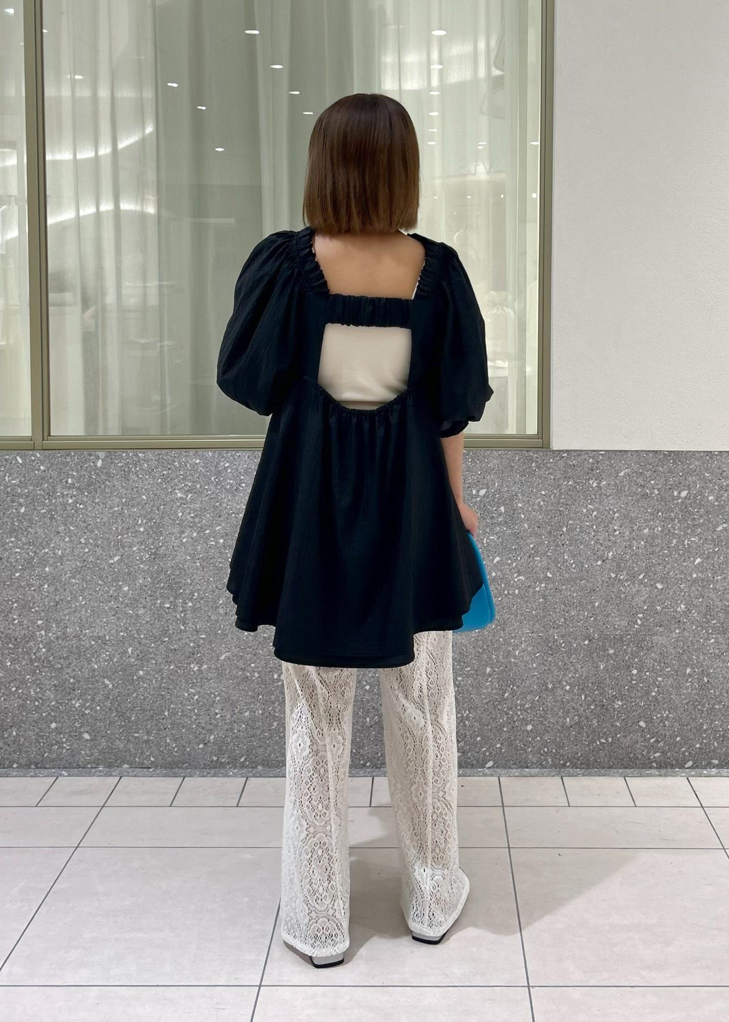 アウトレットVISパフスリーブナイロンチュニックブラウスブラック系 / F¥3,164レビューお尻が隠れる丈感で、デコルテがキレイに見えます