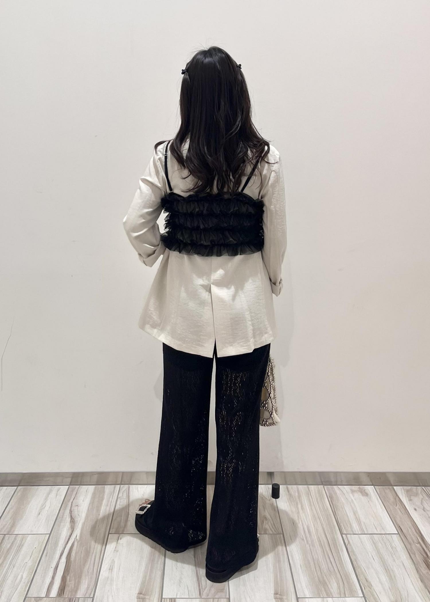 足元も黒で繋げて脚長効果!パンツはレースで抜け感を⭐︎