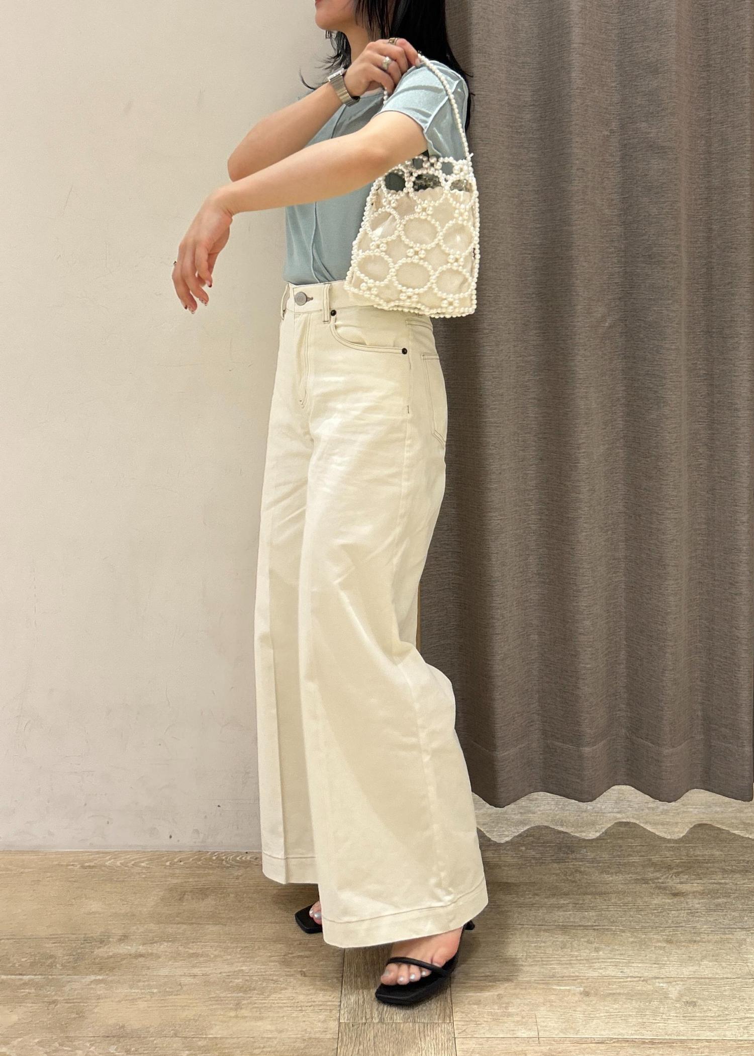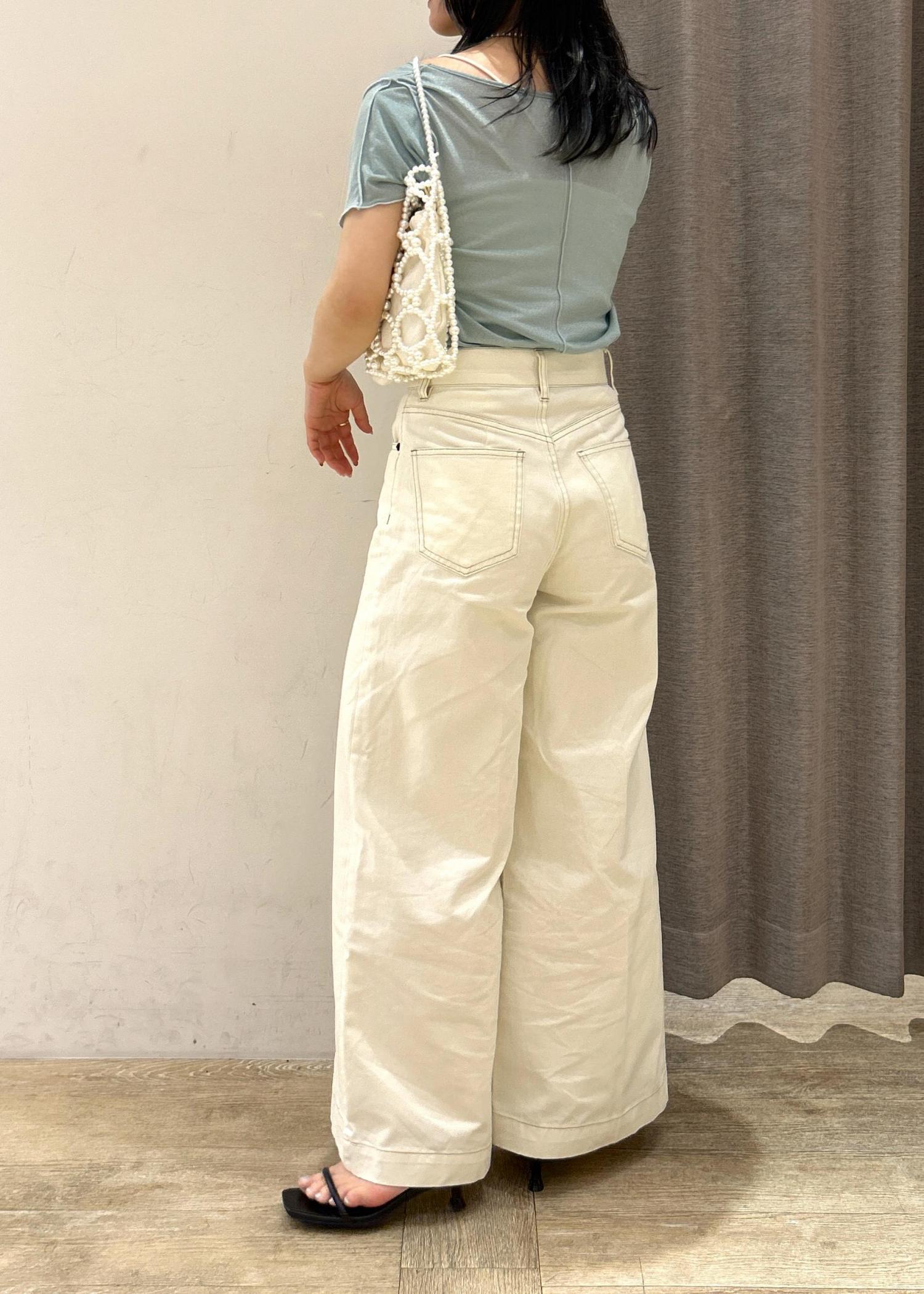 透け感のある素材で襟元は少し広めに開いているので、カップ付きのキャミソール合わせがオススメです◎ -