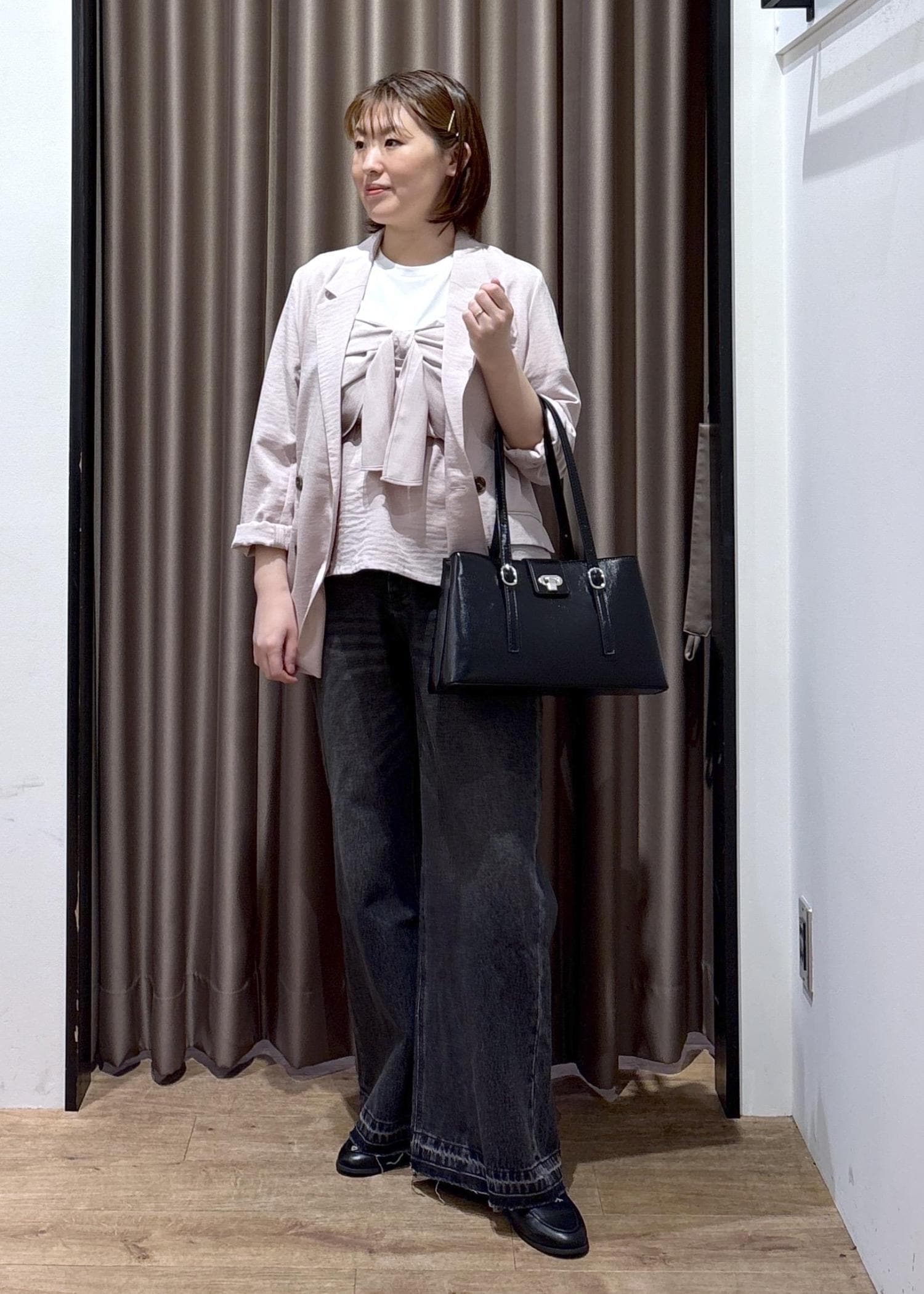 初夏のお出かけに涼しそうなサックスブルーを取り入れたコーディネートにしてみました!トップスはシンプルでありながら袖フリルとフレンチスリーブが腕まわりをカバー!ワイドパンツはセンタープレスでスッキリ足長効果も!柄なアクセで着飾りすぎないすっきりしたシンプルならコーディネートはオフィスカジュアルにもおすすめです!