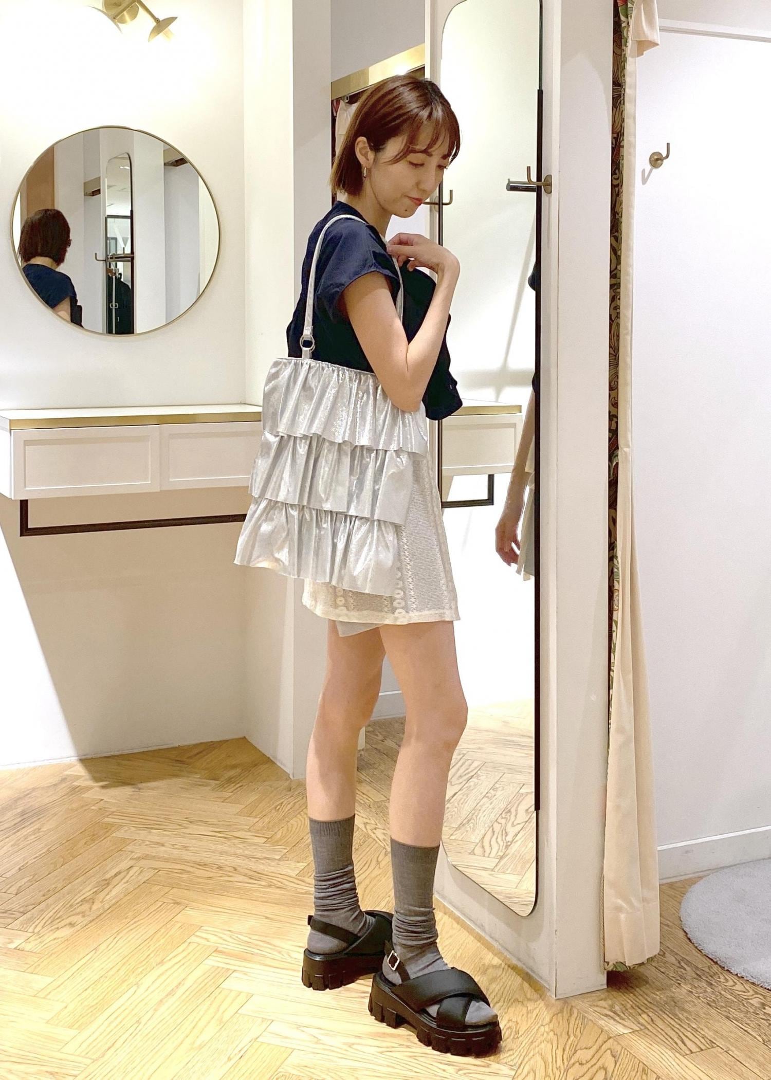 紐で結ぶタイプのレイヤードスカートを、ショートパンツに重ねたカジュアルスタイルです!