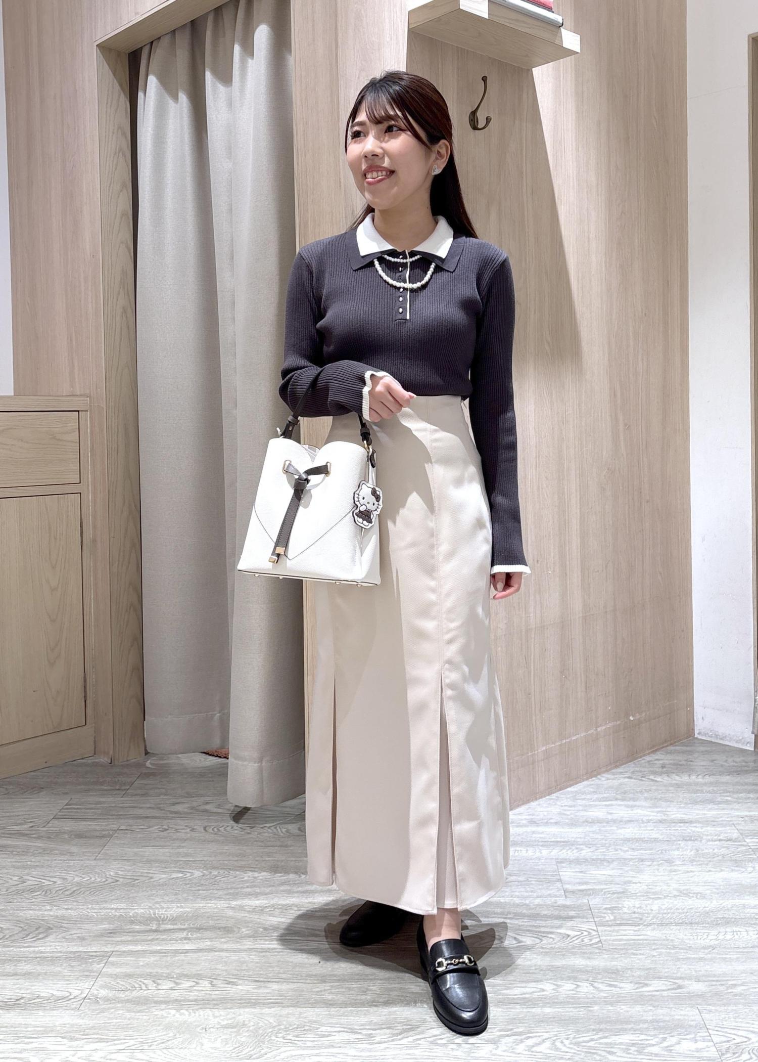 小物をヒールやパールバッグにし柔らかい雰囲気に⭐︎