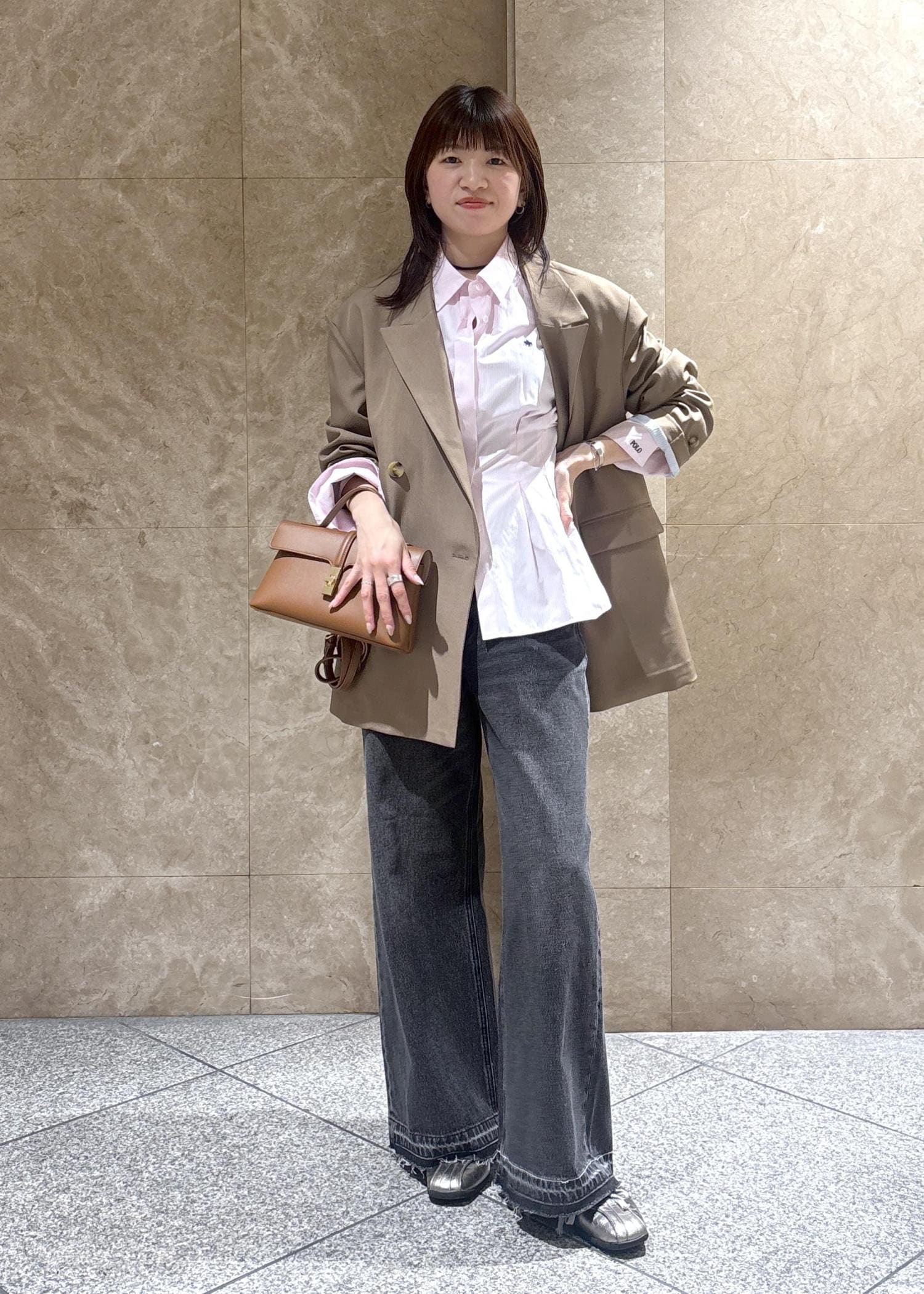 きれいめなブラウスをデニムでカジュアルダウン!