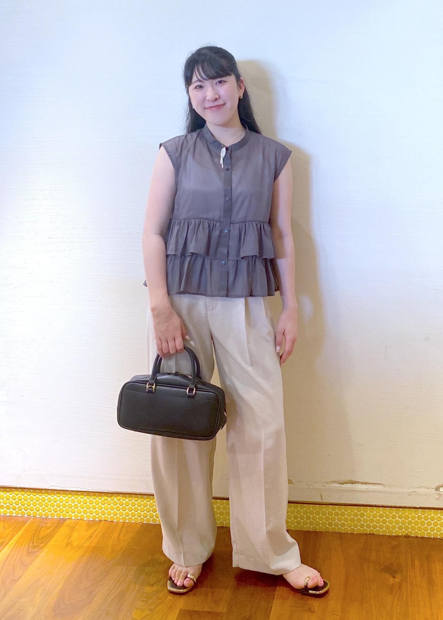 フリルがかわいいシアートップスを使ってコーデを
