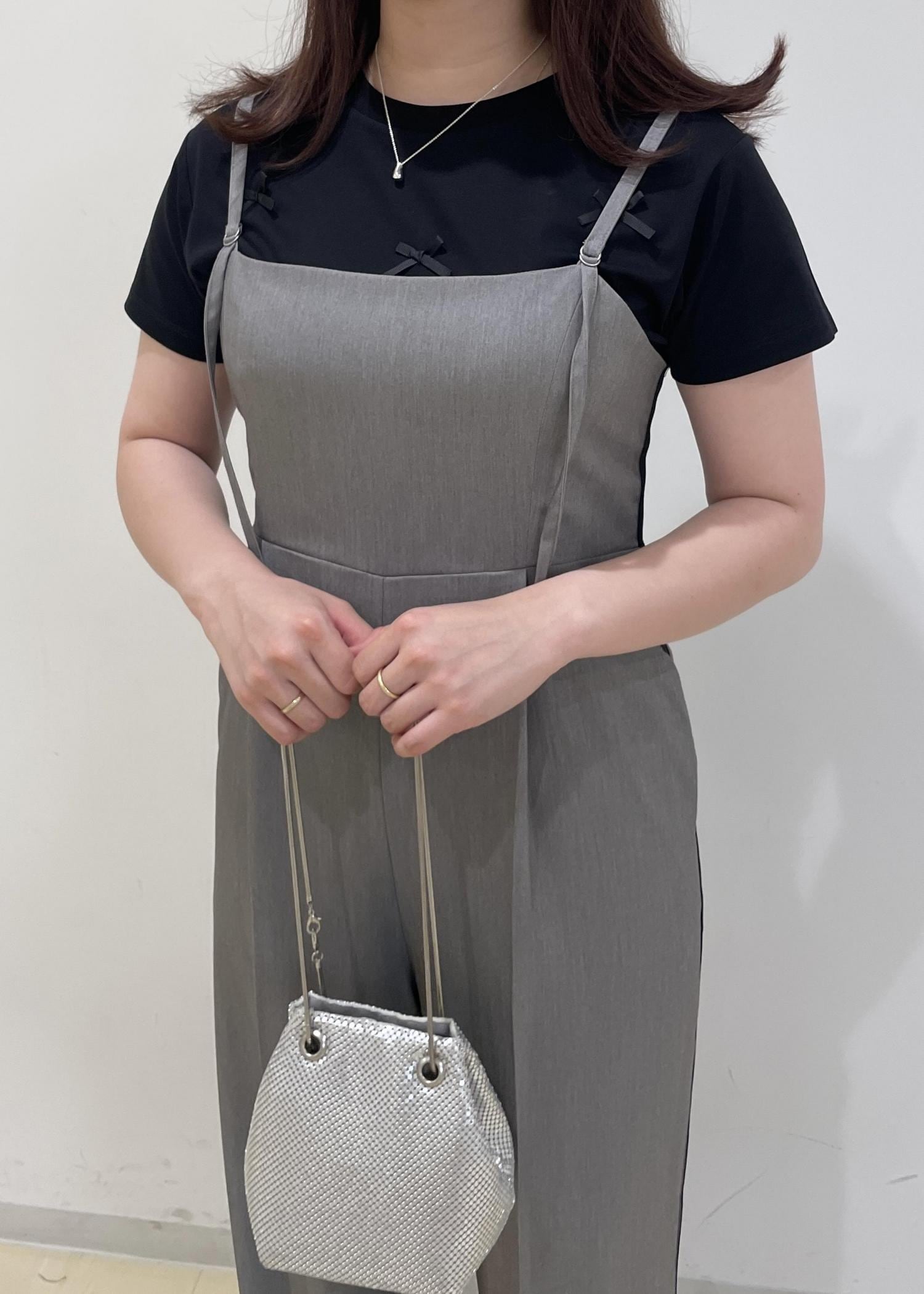 流行りのリボントップスに、グレーのオールインワンを合わせて大人っぽく仕上げました ☺︎