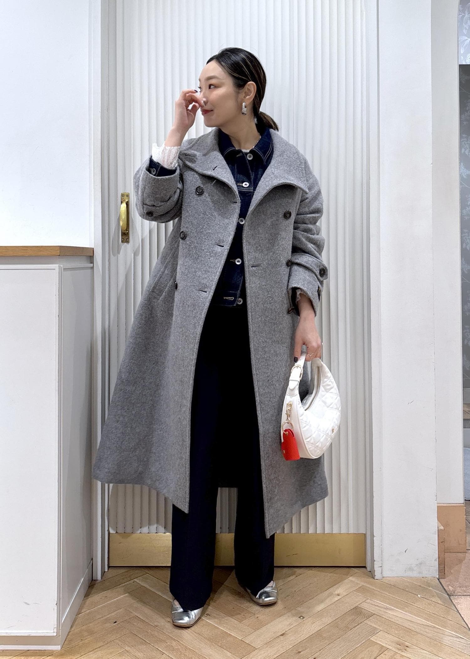 フラットシューズを履いても引きずらずに着られます。
