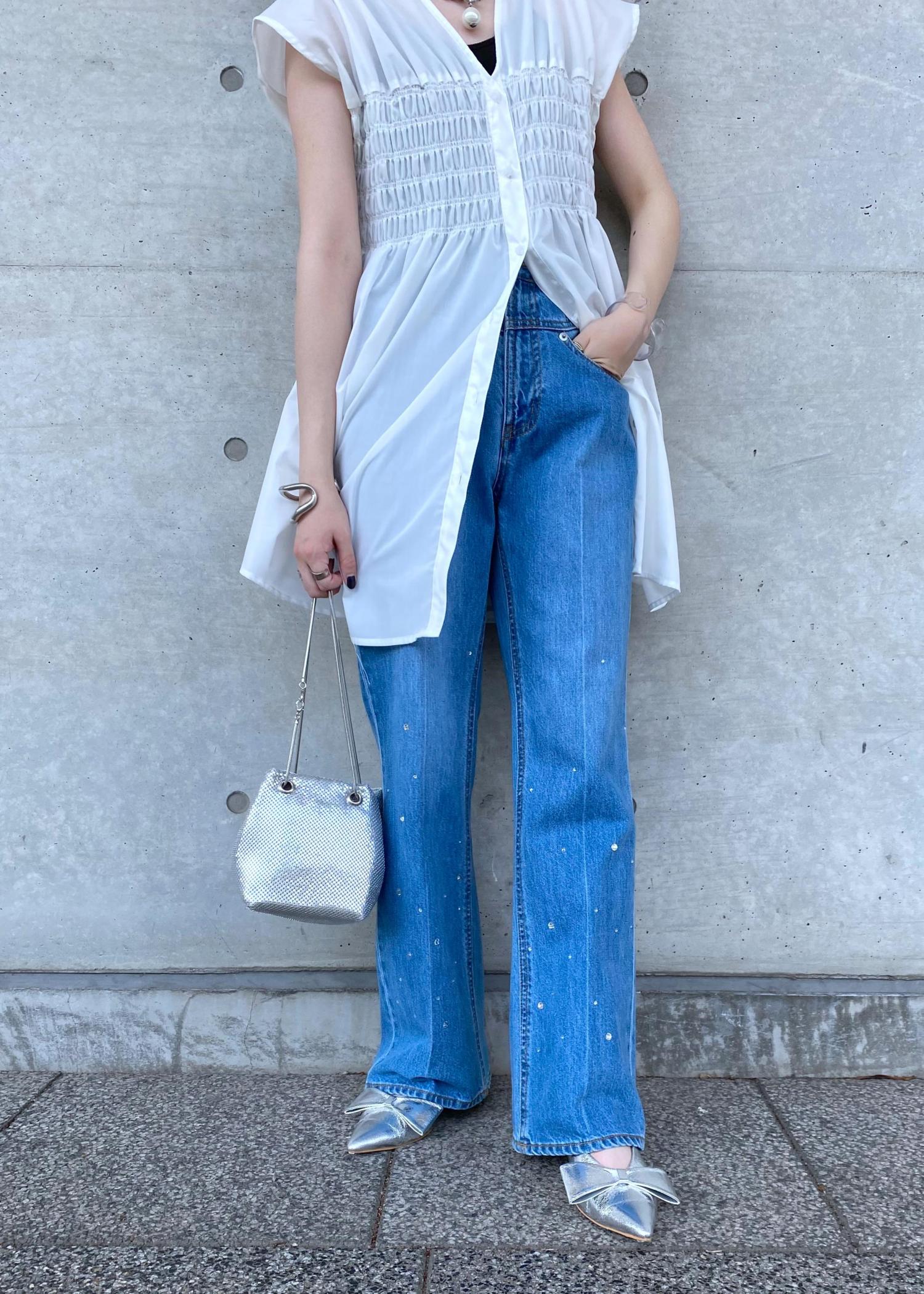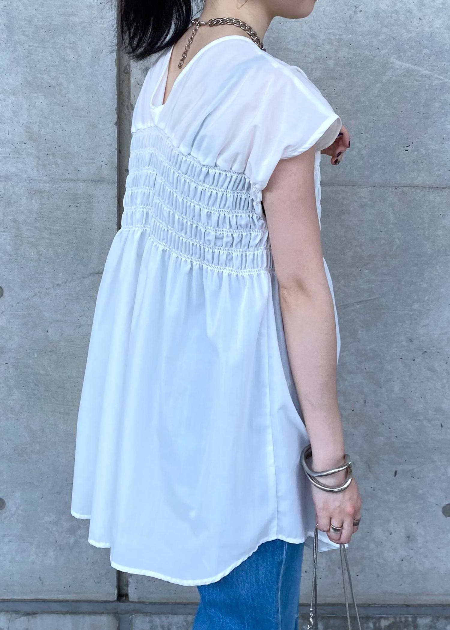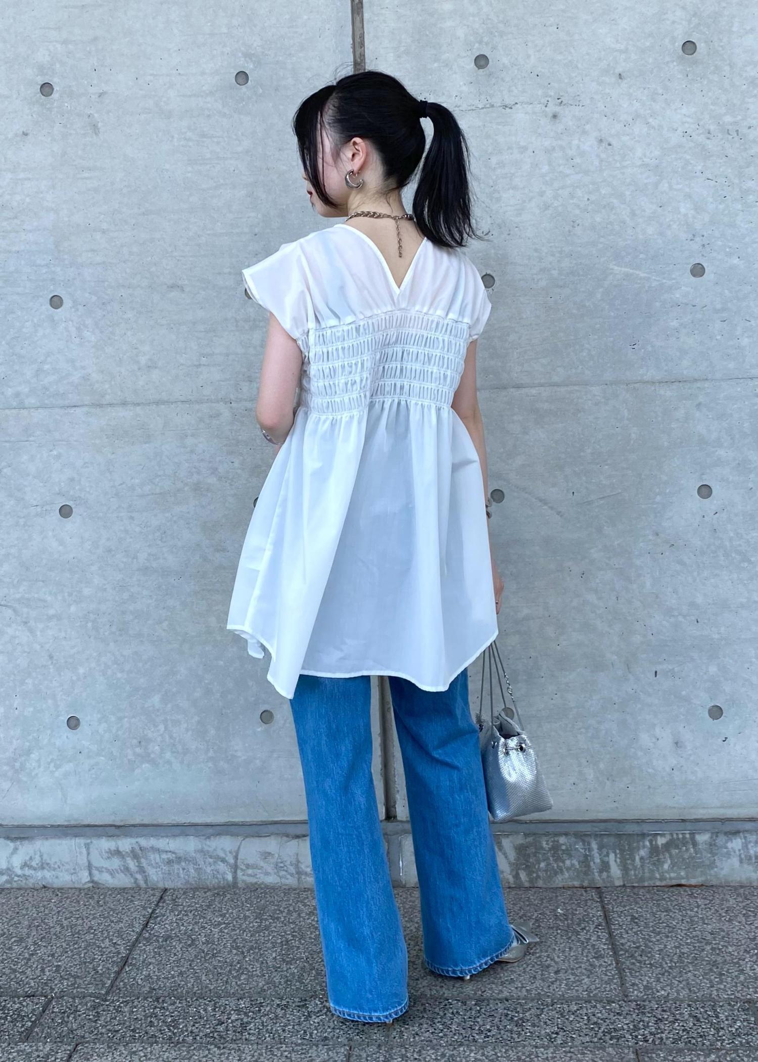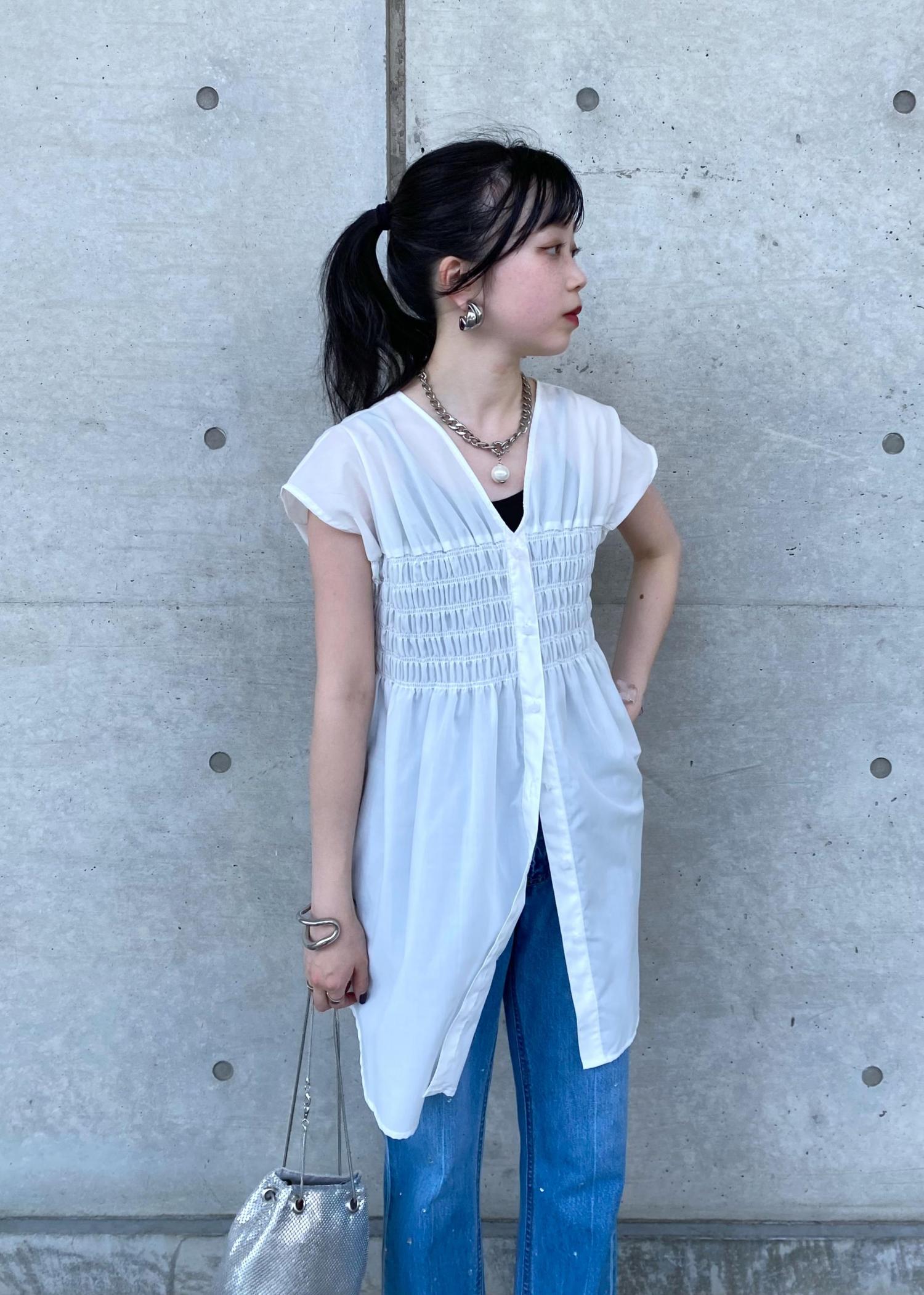 アウトレットVIS【洗える】ゆるVネックシャーリングシャツブラウスホワイト / F¥3,842レビュー胸部分のシャーリングはゴムになっているので、スッキリ見え+着心地楽ちん◎