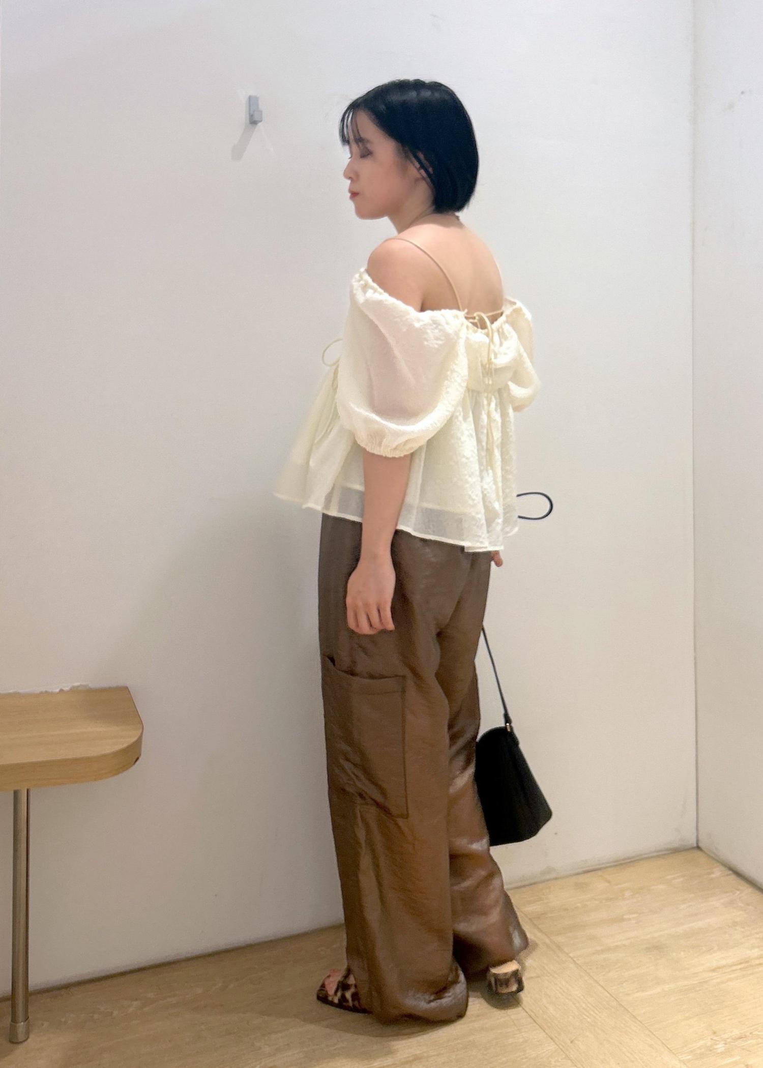 シアー素材のカーゴパンツで涼しく着れます。