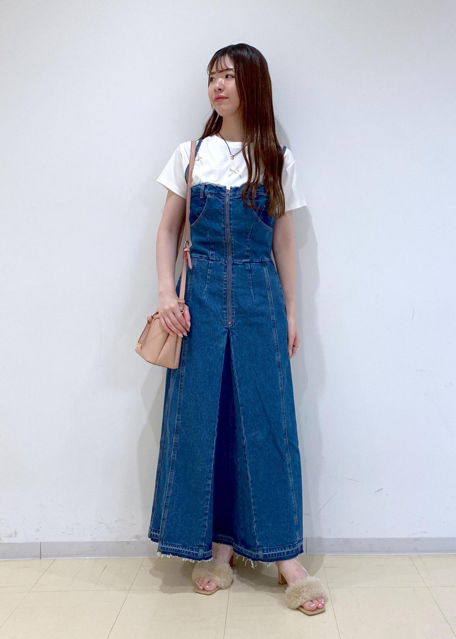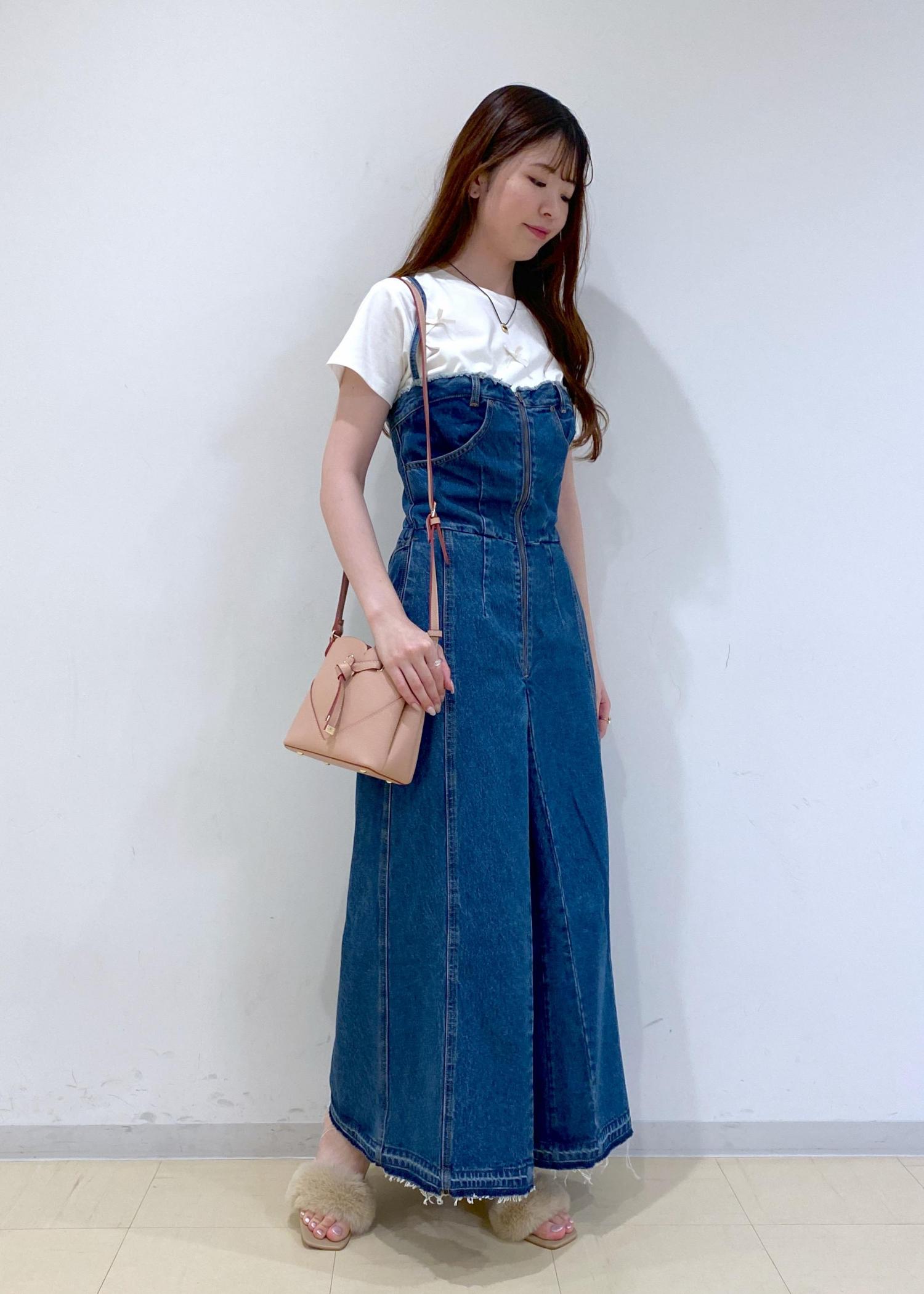 CIMARRON別注アイテムのデニムワンピースが主役のコーディネートです。