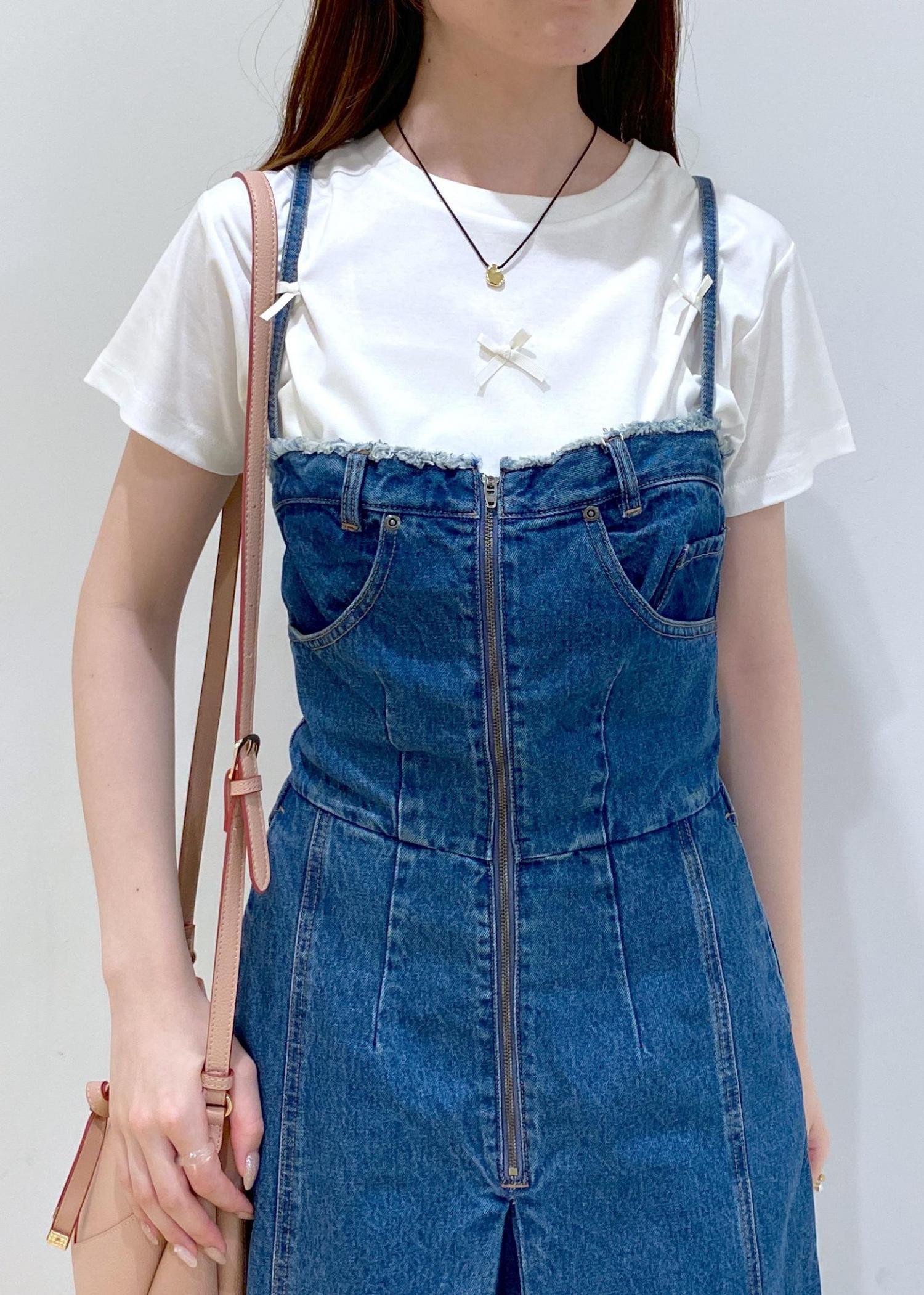 Tシャツは同系色のリボンが大人可愛いデザインです。接触冷感素材なのでサラッと着やすいです◎