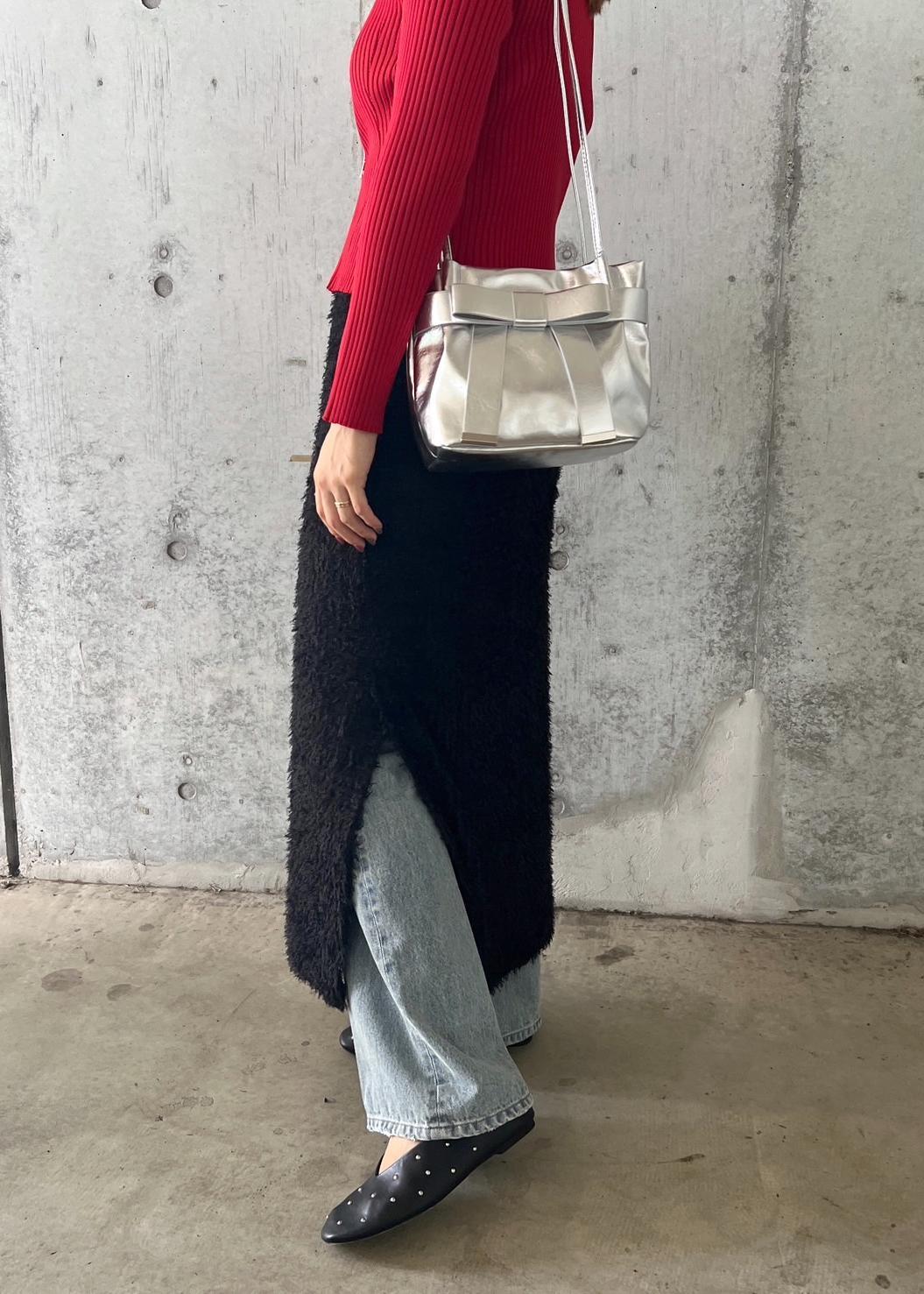 アウトレットVISリボンミニトートバックシルバー / F¥3,557レビューストラップが長めなので肩掛けしやすいです。